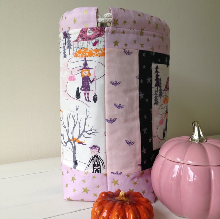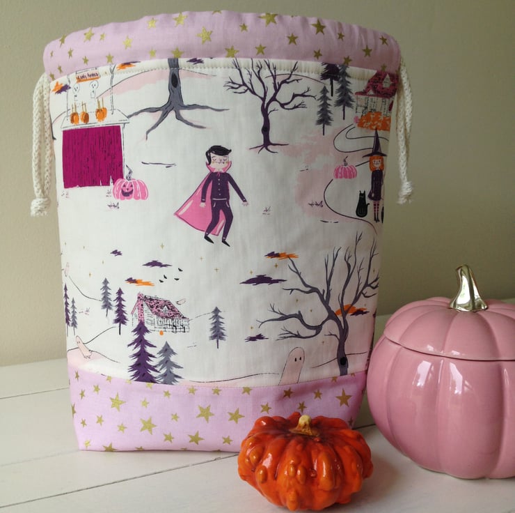 A spooky but cute project bag for your autumnal knitting or crochet.