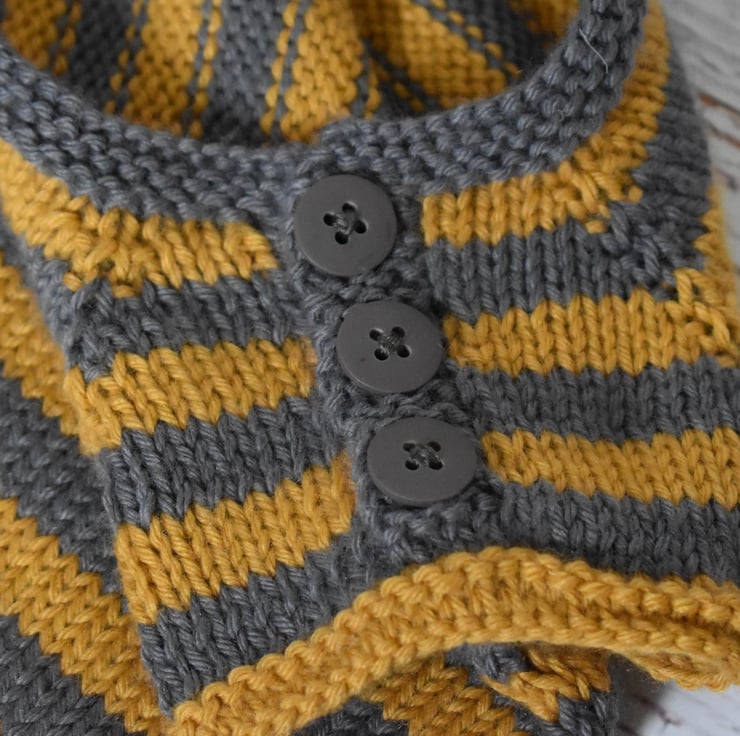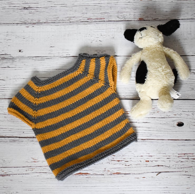 Hand Knitted Baby Top - Grey and Ochre stripes- 0-3months