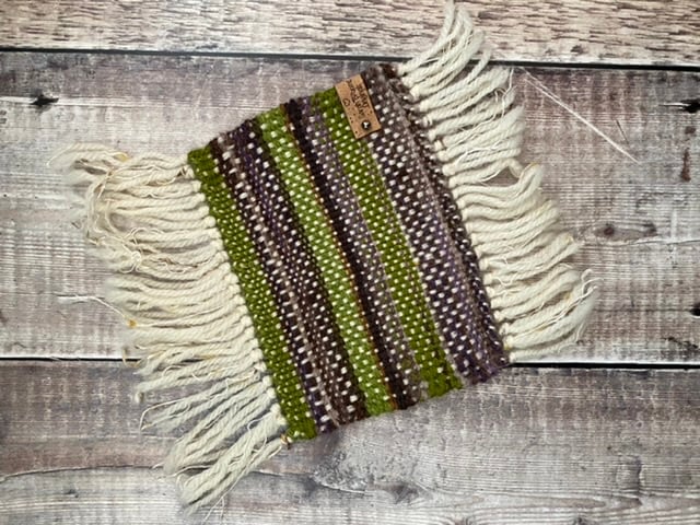 A beautiful oversized mug rug handwoven using woollen yarn inspired by the landscape near to my home. Care instructions: Please hand wash and dry flat.