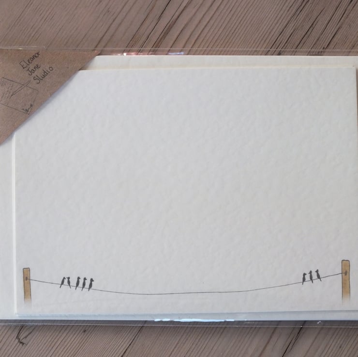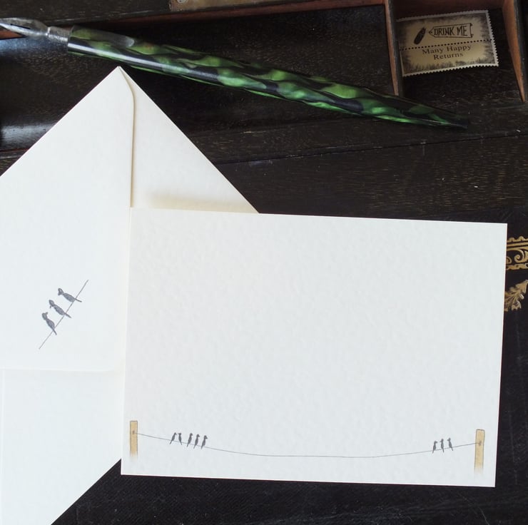 I love to sketch outside and on one of my excursions I couldn’t resist drawing the birds on the telegraph wire. It seemed the perfect illustration to add to some correspondence cards.