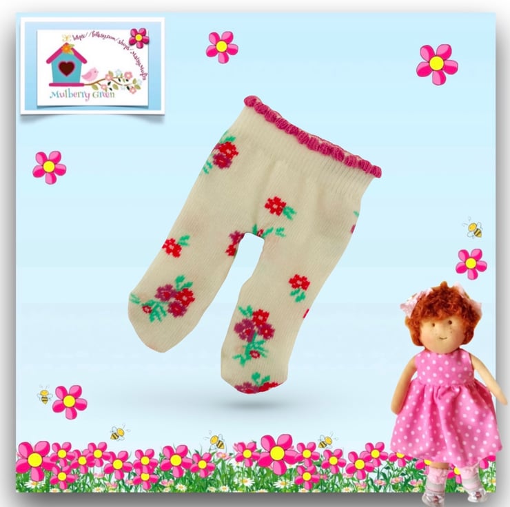 A sweet pair of cream tights covered in pretty little flowers to fit the Mulberry Green characters. The tights look lovely with the little felt shoes.