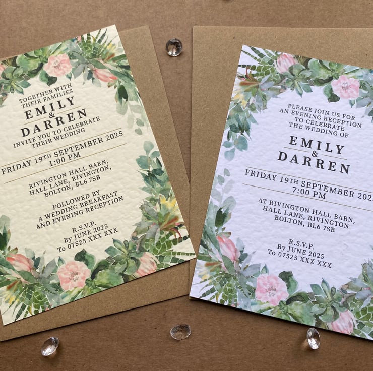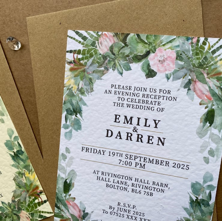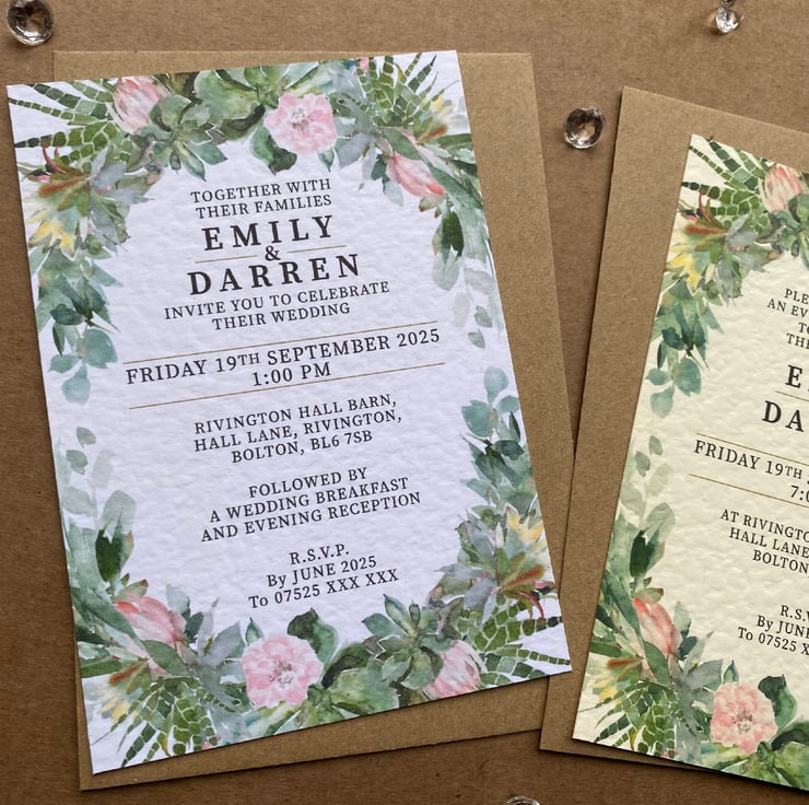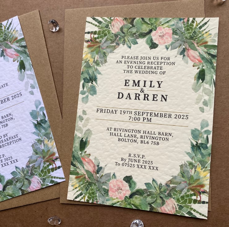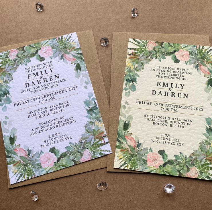 Quantity 1 includes 10 x (A6 or A5) size single sided personalised invitation cards