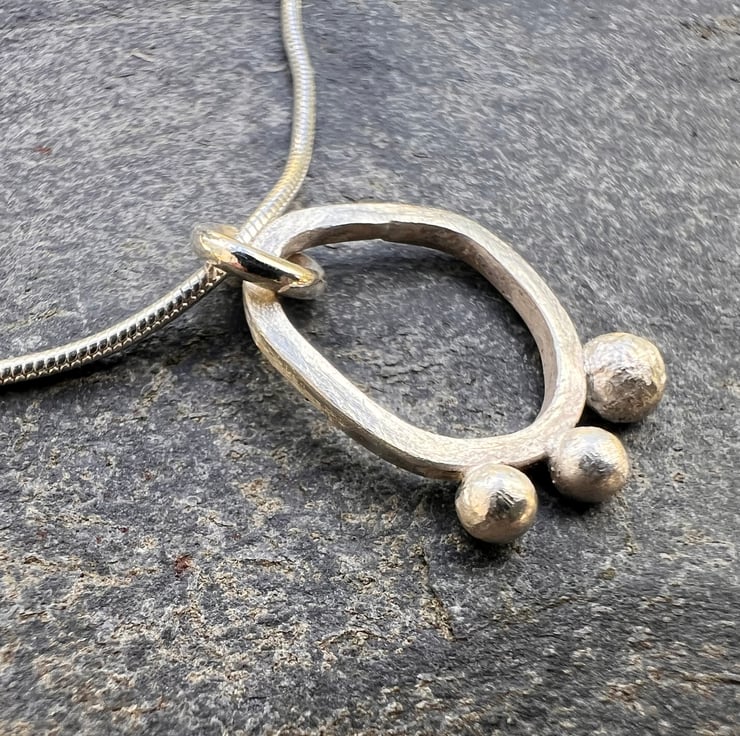 The pendant is secured onto the chain with a small thick sterling silver jump ring, which is soldered closed.