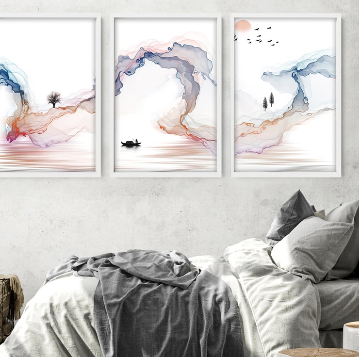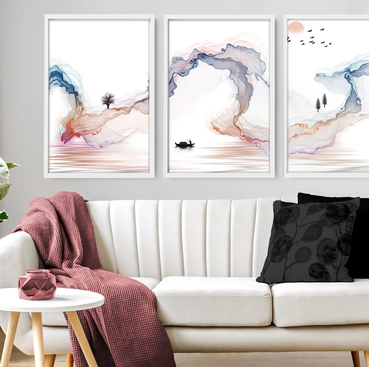 "Decorate your living room with this set of 3 Japanese Inspired Illustrations suitable for the living room, bedroom, home office, hotel lobby, office waiting room area, and hospital decor. Perfect decor to create a calming and tranquil interior for a stress-free sanctuary. - Get yours today!