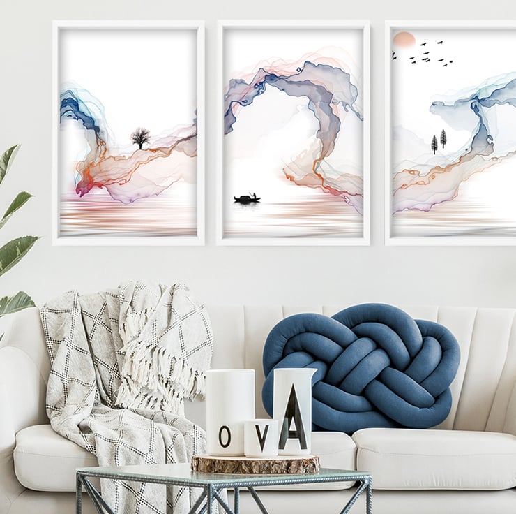 You will receive 3 non-framed Landscape Wall art prints with Japanese inspiration.