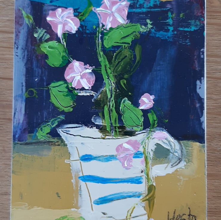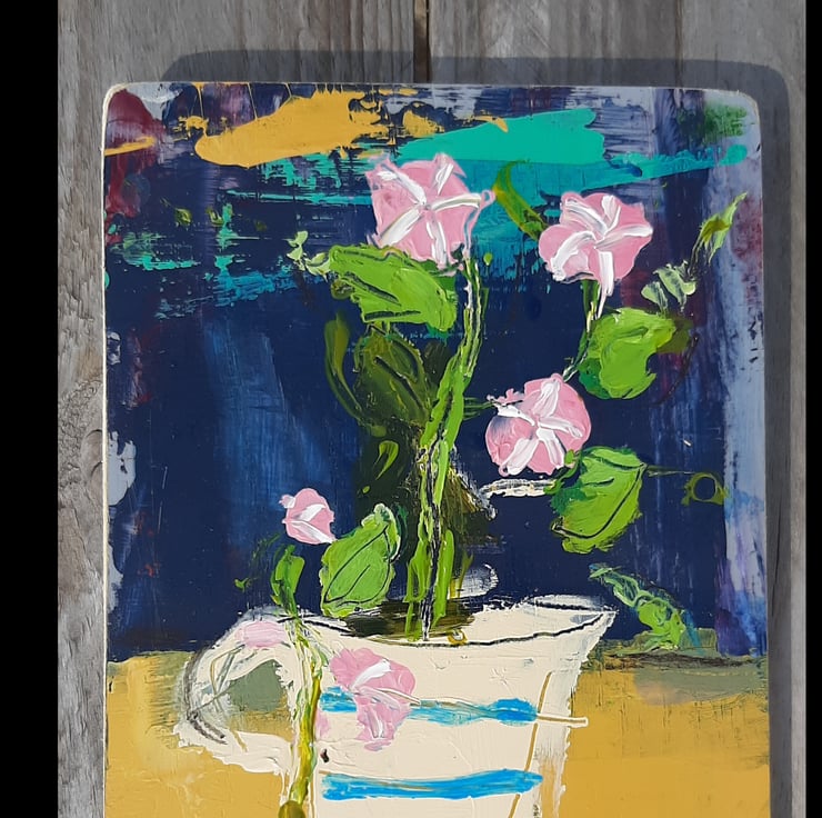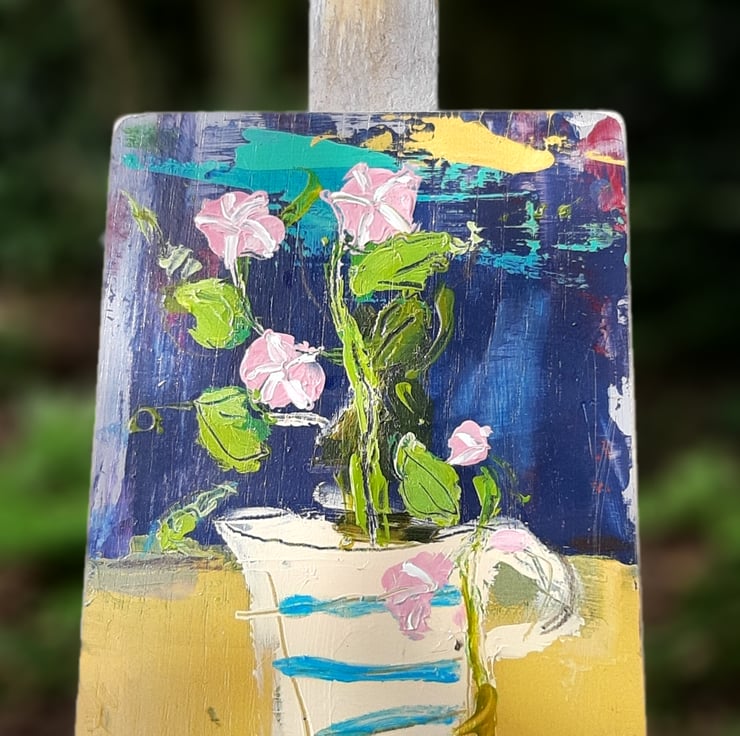 A textured painting on reclaimed wood measuring 16 cm tall and 12 cm wide. A cute and confident little painting by artist Hesta singlewood aka bodkincreates on Instagram. All ready to hang and lightly varnished and signed .