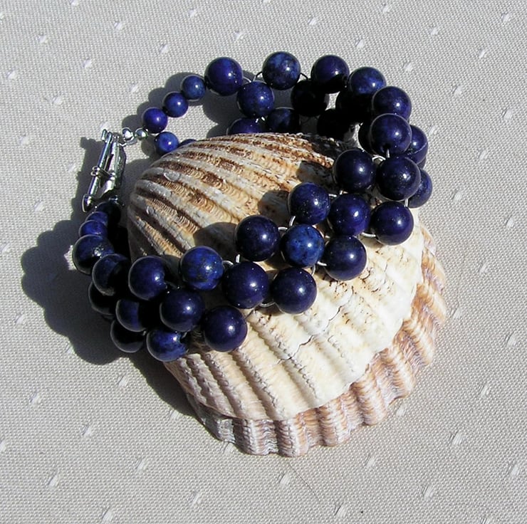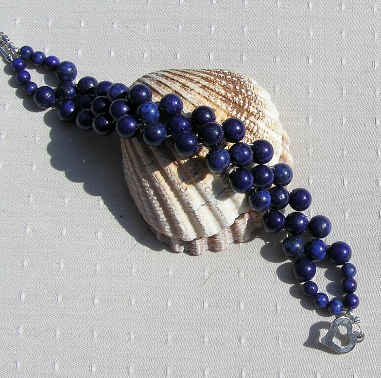 This Stunning Bracelet is made wholly from Blue Lapis Lazuli Beads, woven together to form this wonderful Cuff - a Swathe of Blue that will look stunning either worn casually or with something more Elegant for a Special Evening out