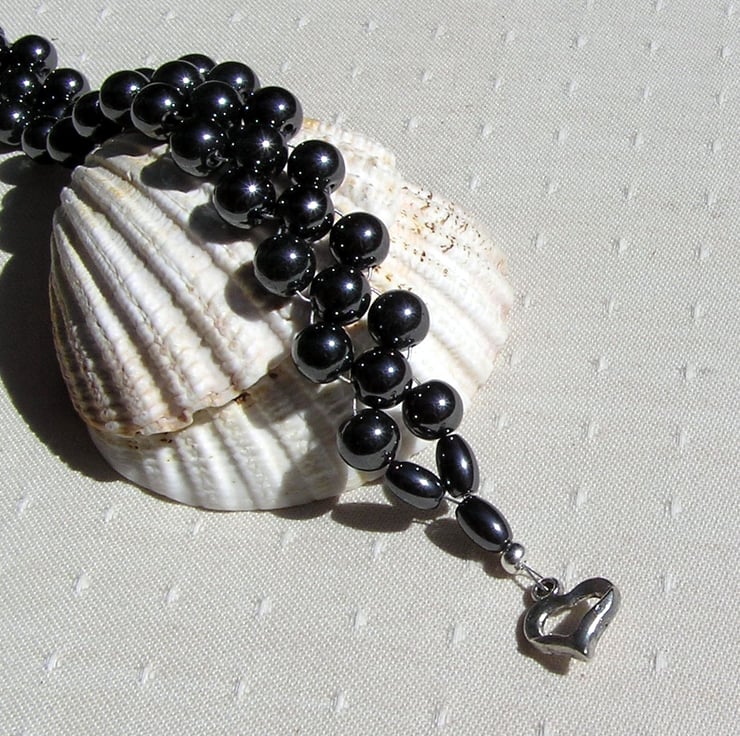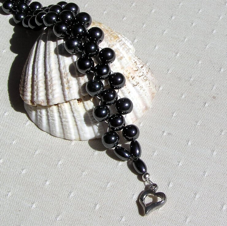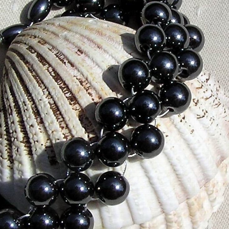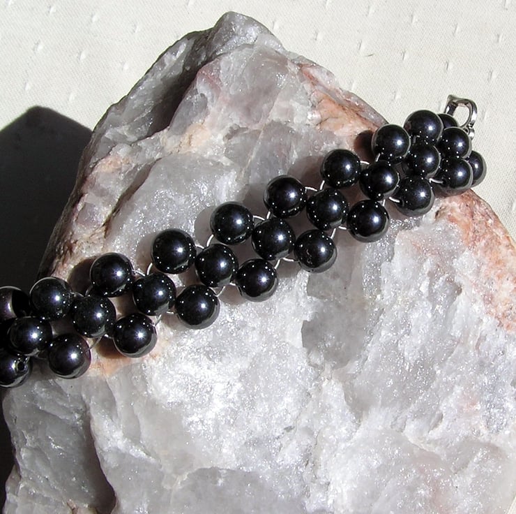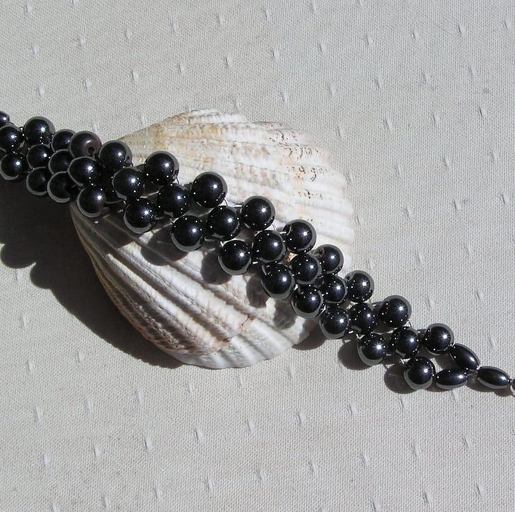 This Stunning Bracelet is made wholly from Black Hematite Beads, woven together to form a wonderful chunky Cuff - a Steely Gothic design that will look stunning either worn casually or with something more Elegant for a Special Evening out