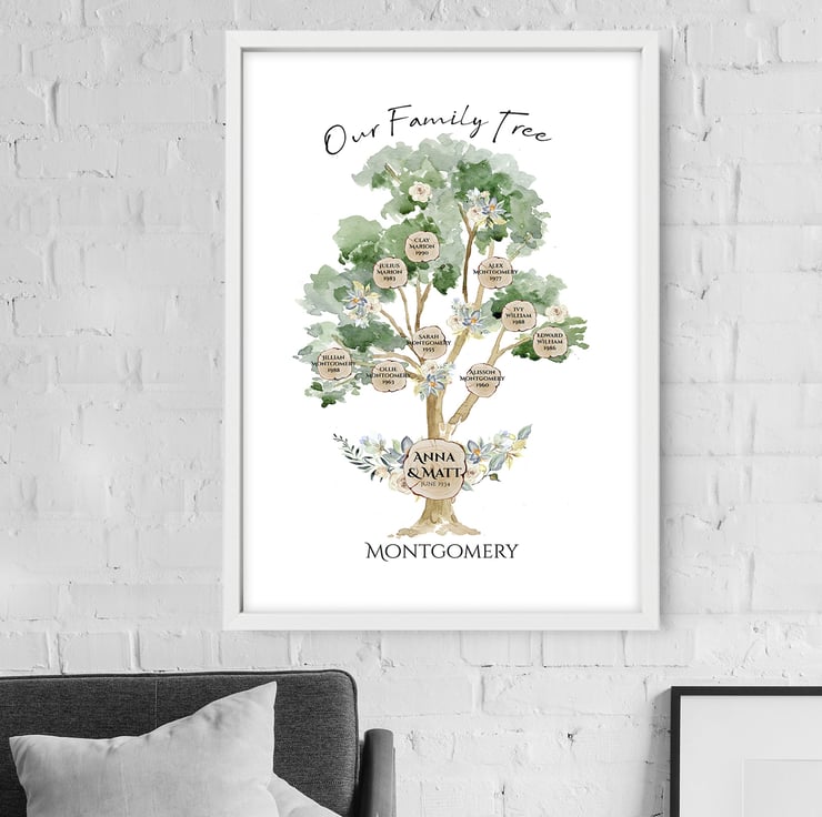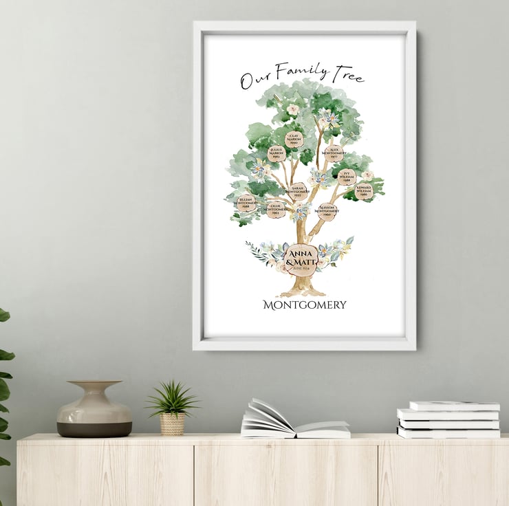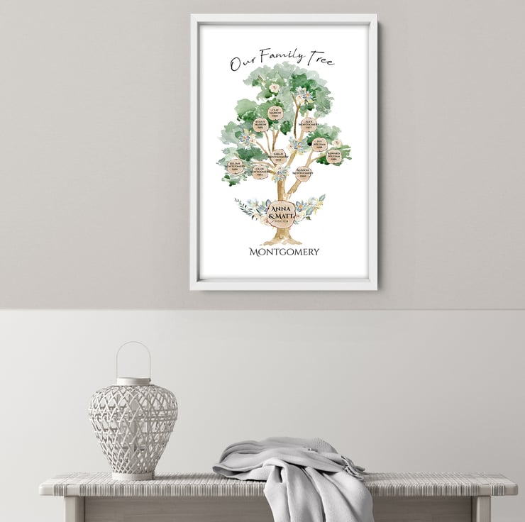 Decorate your Living room with these personalized Family Wall art prints. Display 2-3 generations ( 3-15 names) of your family history with my beautiful custom family tree!