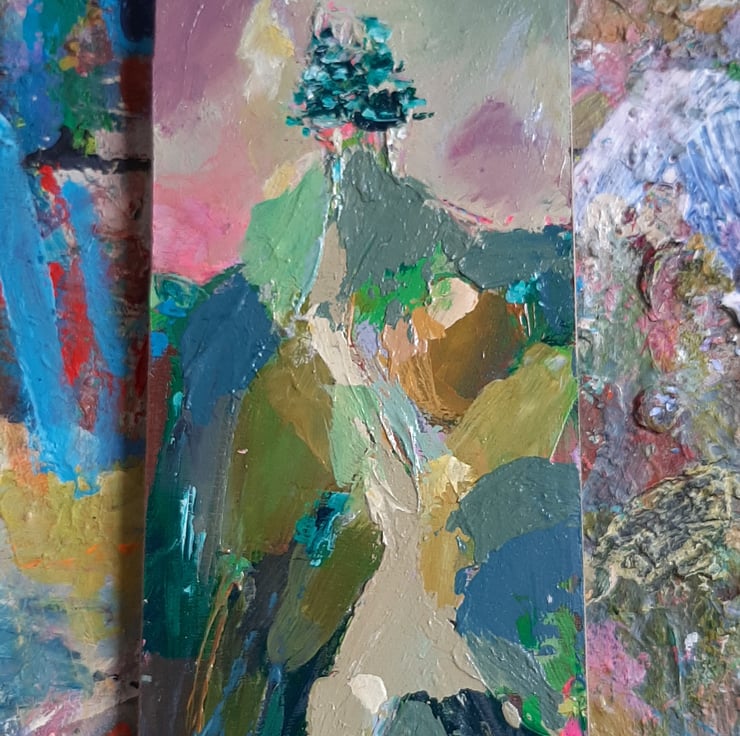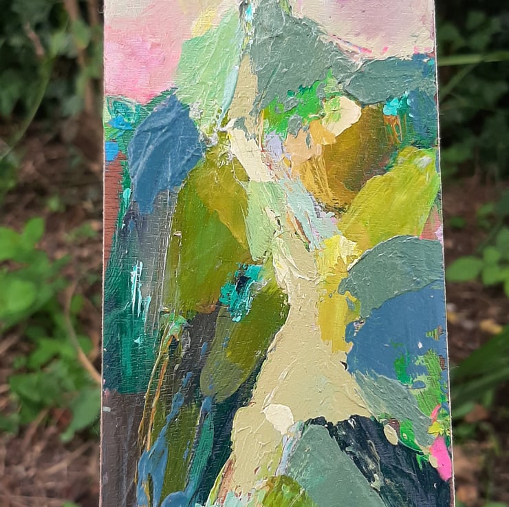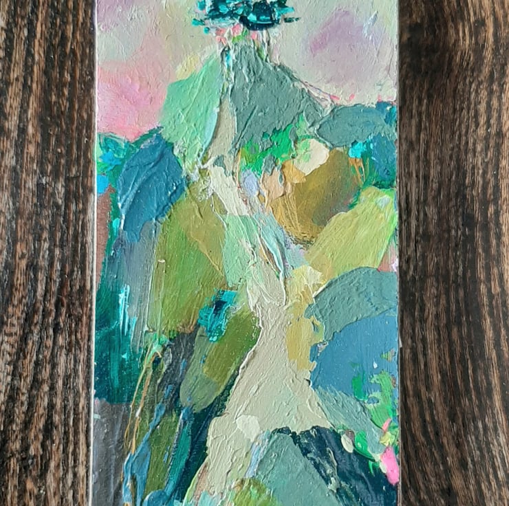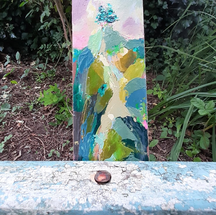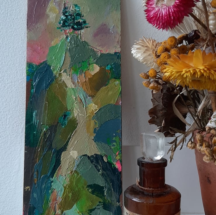 Based on colmers hill in Dorset this sweet painting is very textured and lots of rich shades of green. Painted on wood board. Measuring 20.cm tall and 8 cm wide .by artist hestasinglewood aka bodkincreates on Instagram. Small original painting