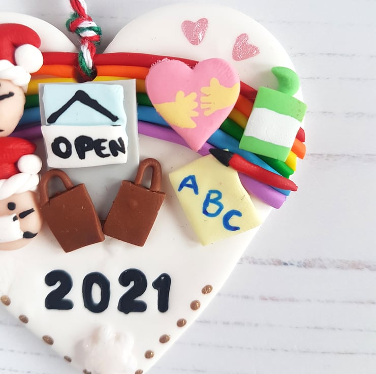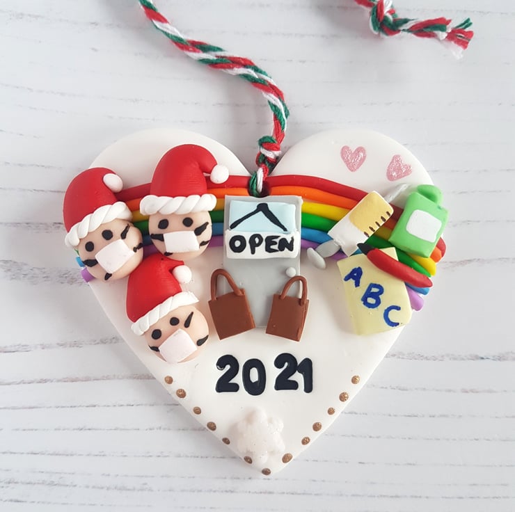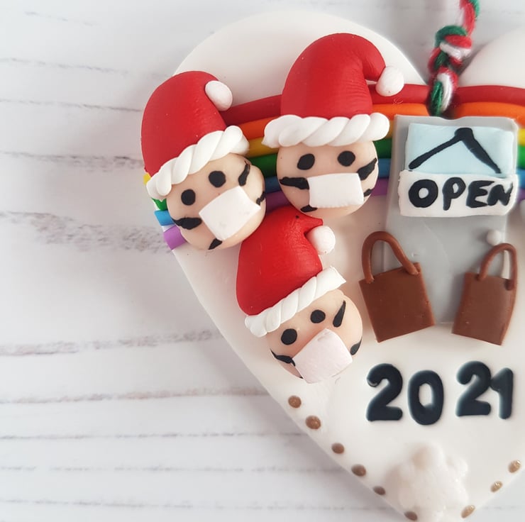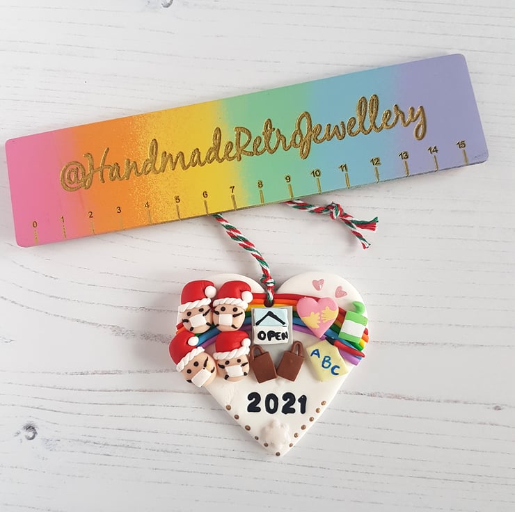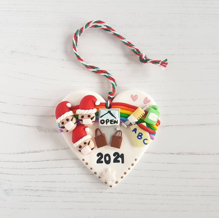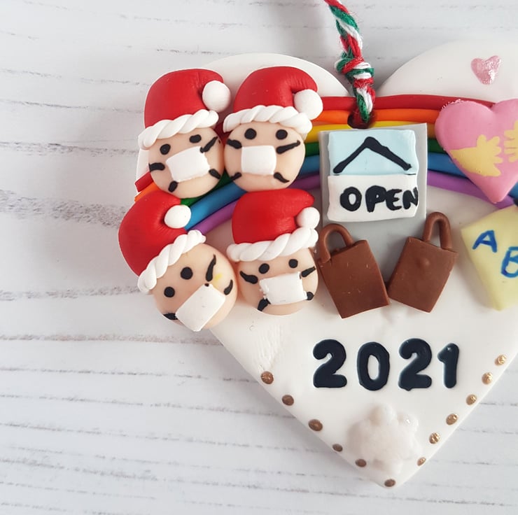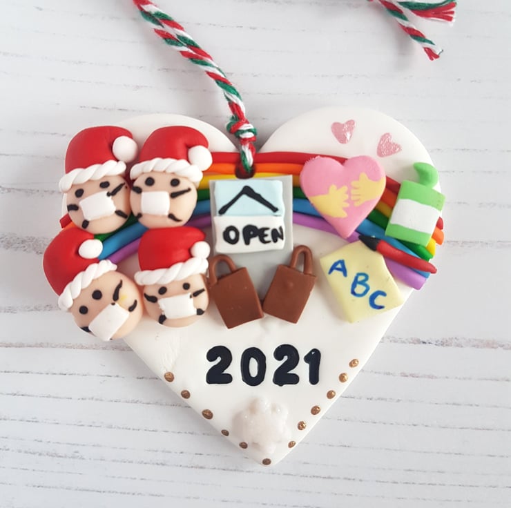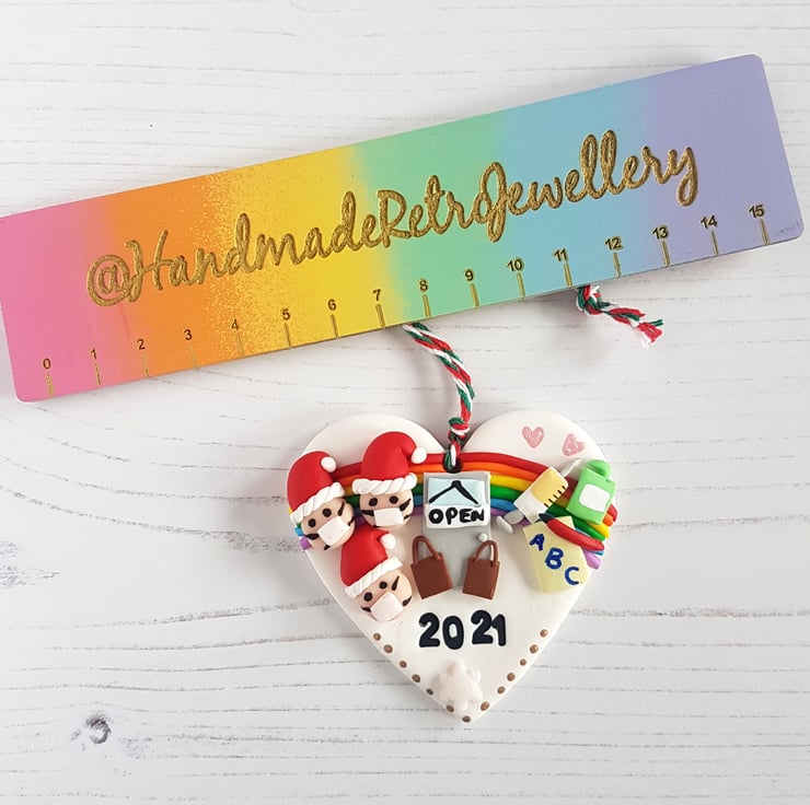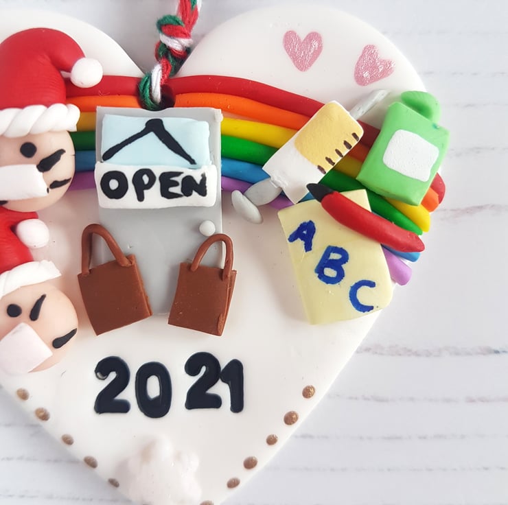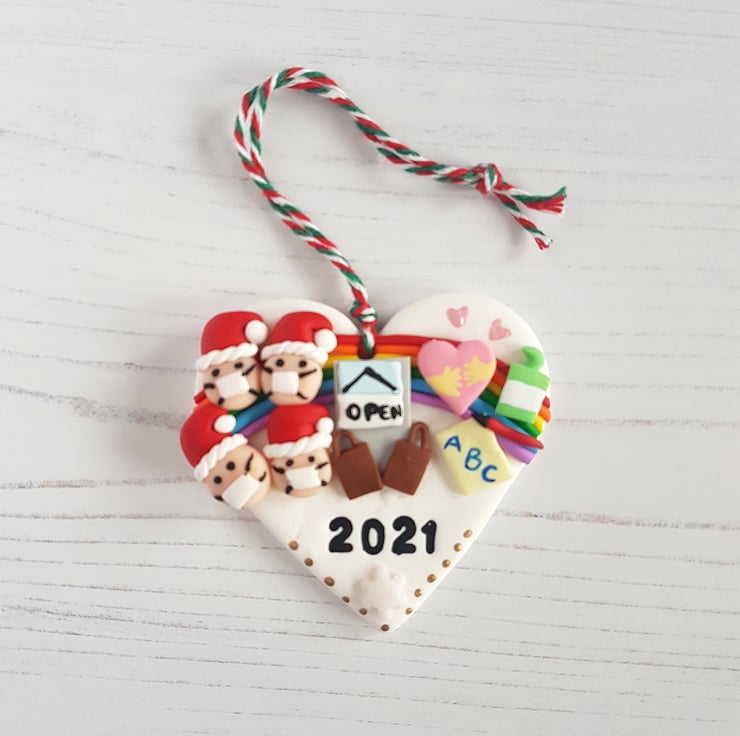 Following on from the popularity of last year's decoration, this lockdown inspired Christmas hanging decoration is completely handmade using polymer clay, with detail painted using acrylic paint.