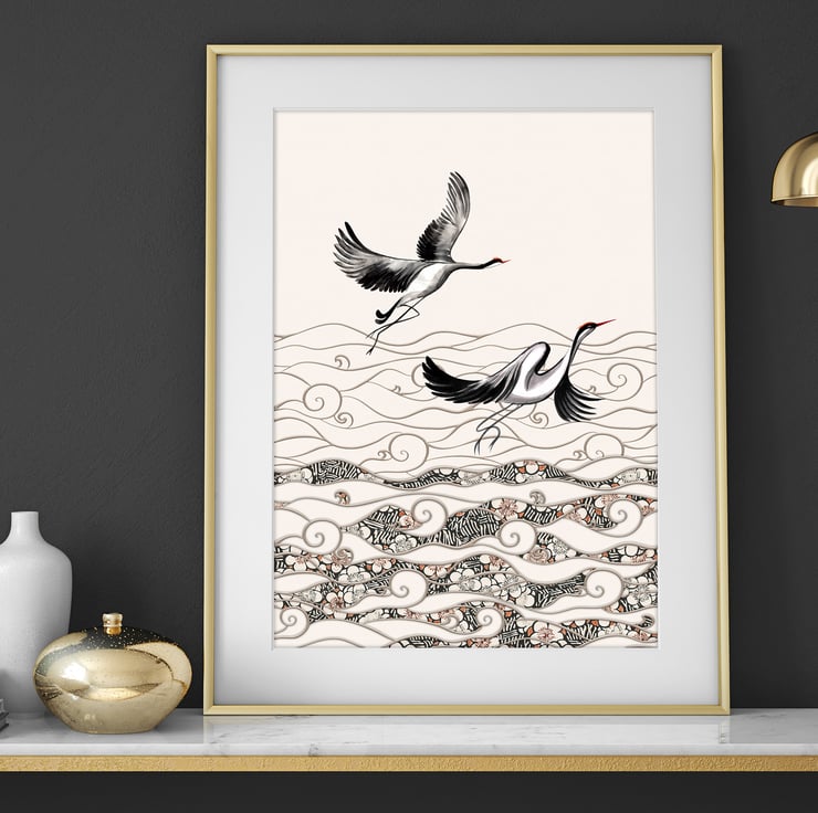 You will receive 2 non-framed Japanese Cranes Wall Art Prints.