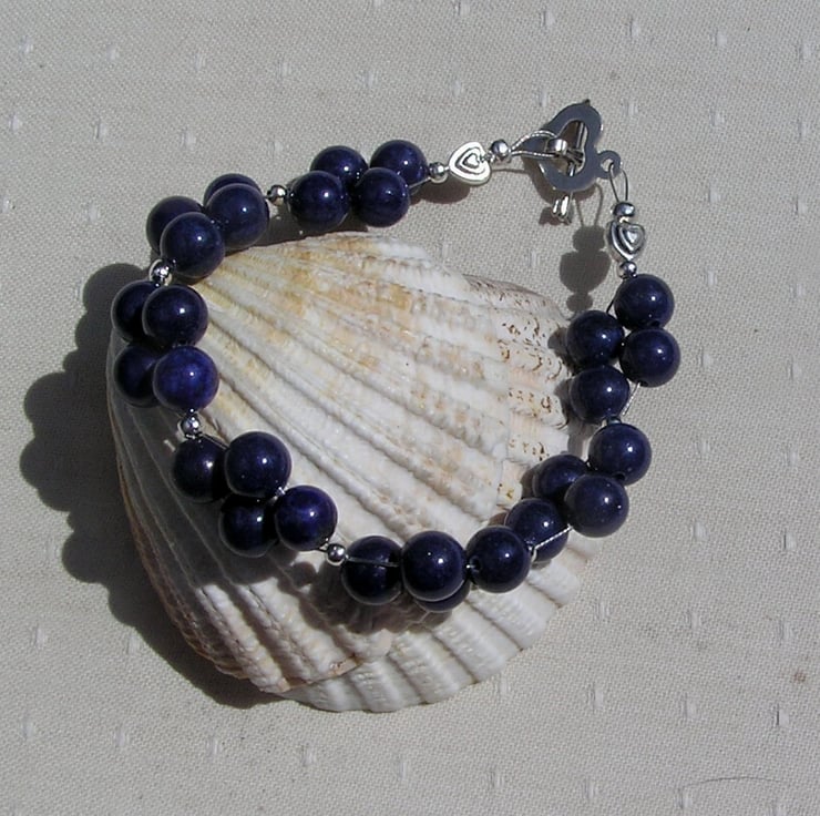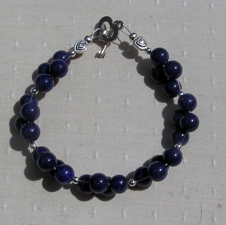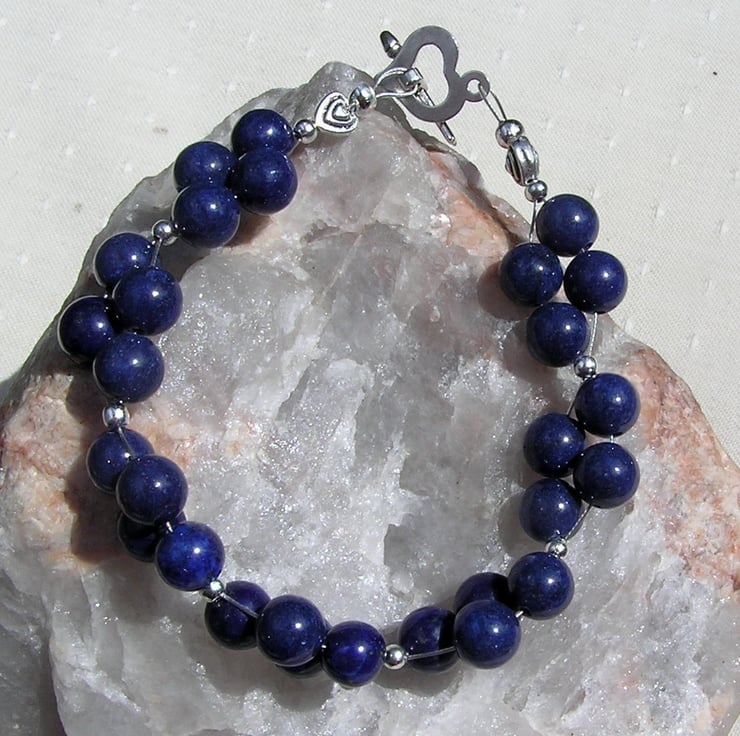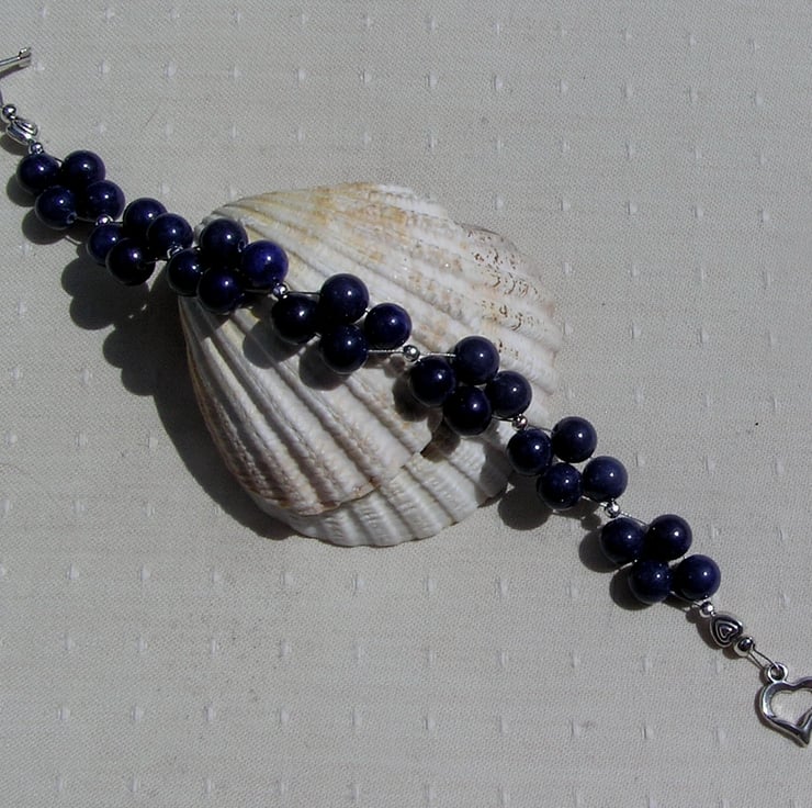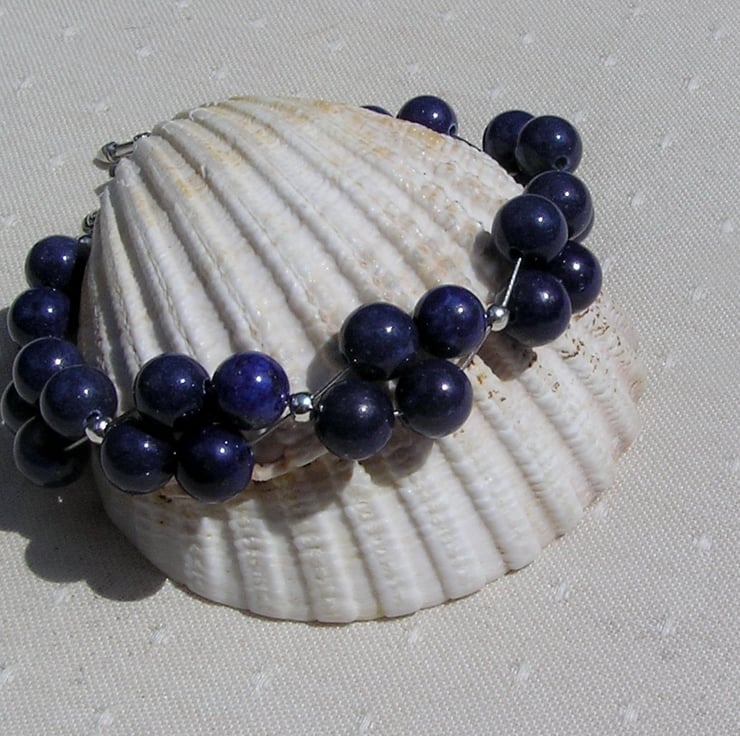 This Stunning Bracelet is made wholly from Lapis Lazuli round beads clustered together in four's and for that added bit of sparkle tiny Silver spacer beads - A Beautiful combination for either the casual look or wear it with something more Elegant for a Special Evening out
