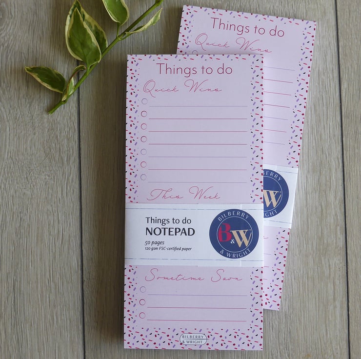 A 'To do list' just keeps me motivated to tick things off and keep me on track with jobs for the day, something I rely on all the time and rather than the back of an envelope this notepad just looks great on the desk.