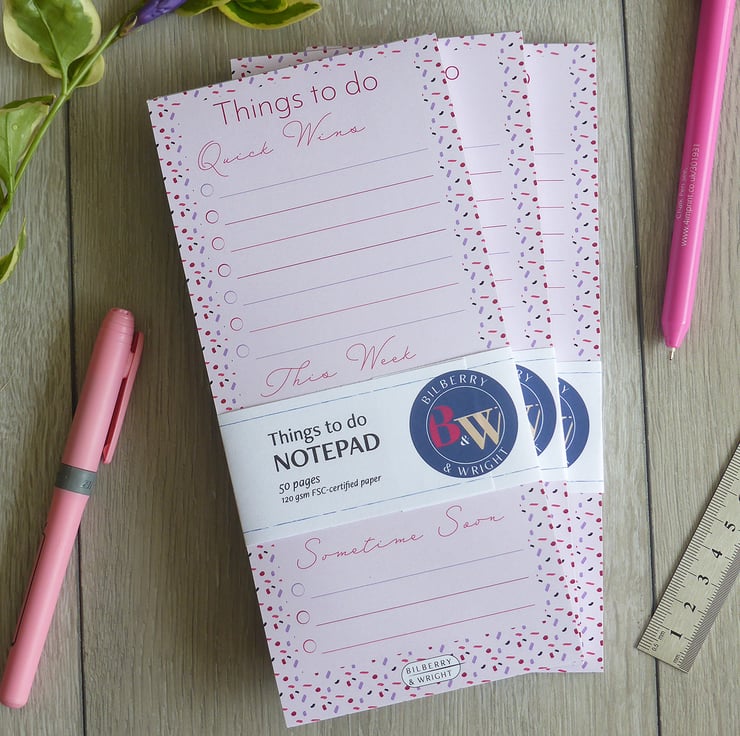 Perfect as a to do list pad, desk notepad, planner pad or gift for stationery lovers. Practical, cheerful and made to help you get things done.