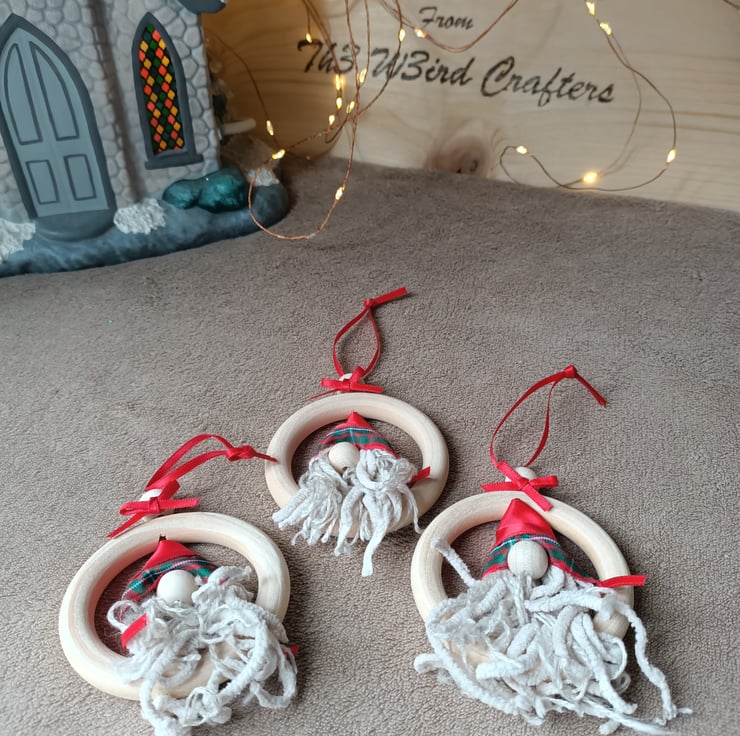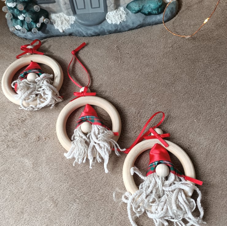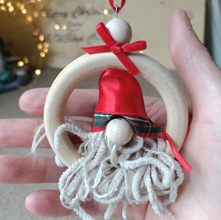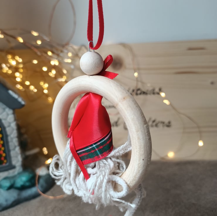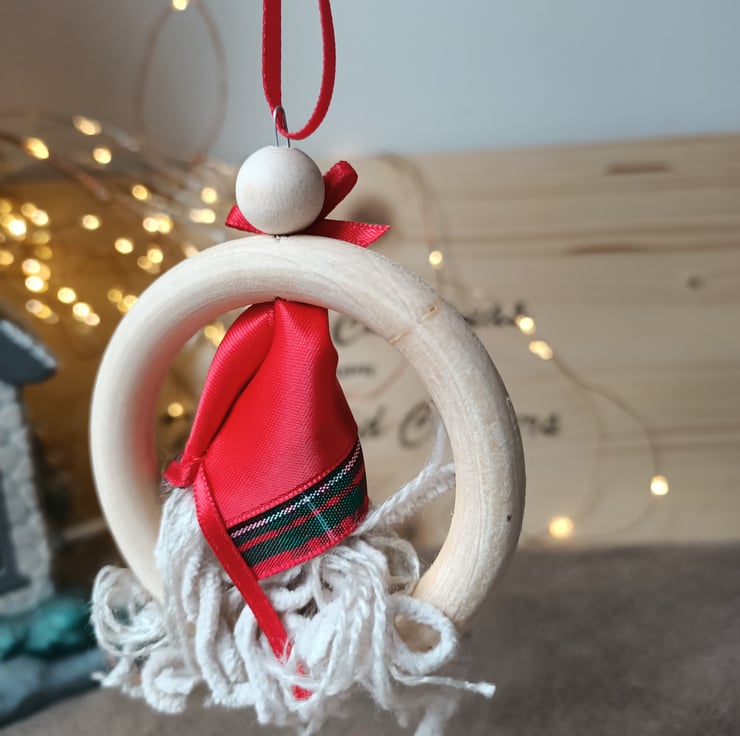 Red tartan gnome wooden hanging decoration christmas bauble. One supplied.