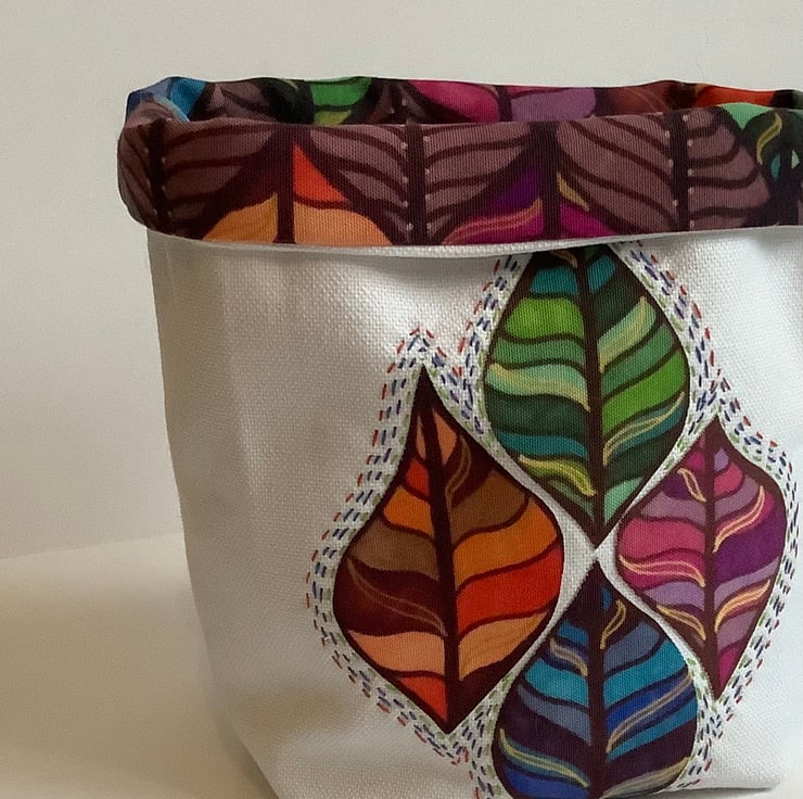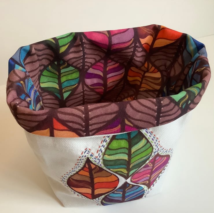 Hand embroidered multicolour leaves, this fabric is unique to me, but can be made in any colour way.