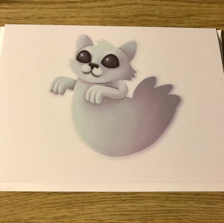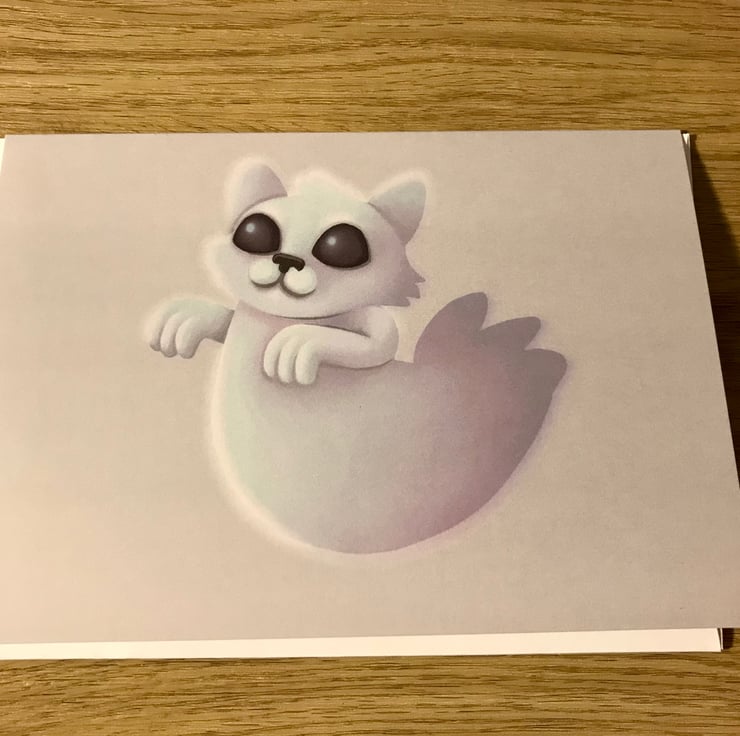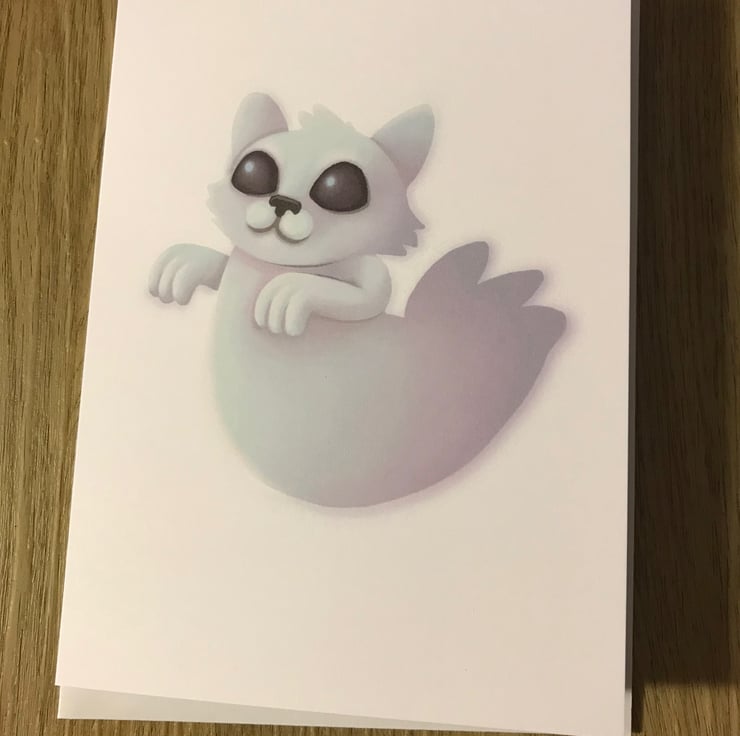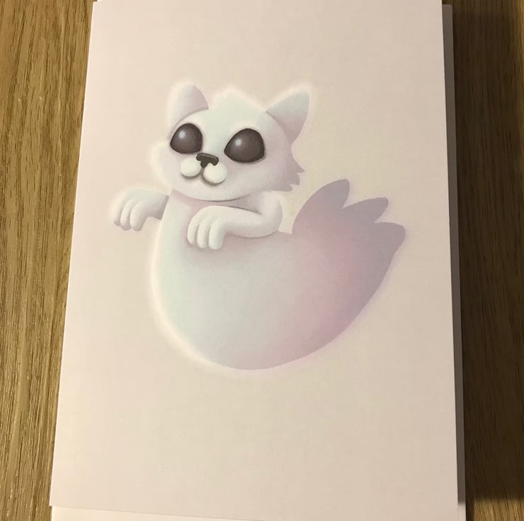 A cute spooky ghost cat blank greeting card with white envelope by DuffleCat Prints (Damian Case)