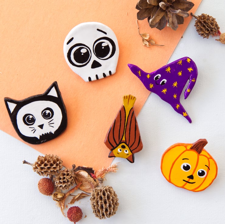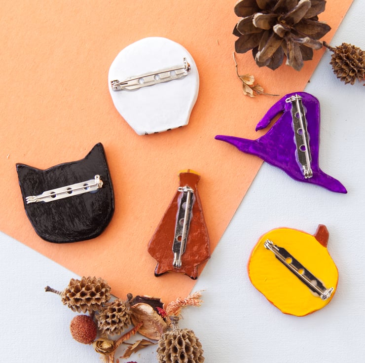 Five spooky, Halloween-themed, handmade pin badges (sold individually). They're the perfect gift for anyone who loves Halloween!