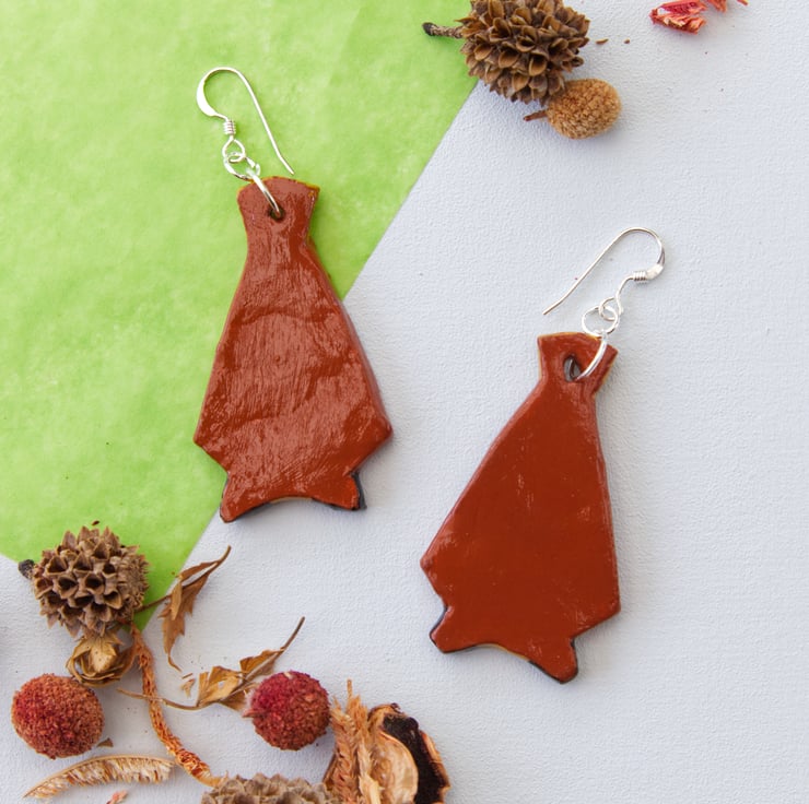 The earrings are finished with silver-plated jump rings and attached to sterling silver earring wires, so they are good for people with nickel allergies. Because they're made from clay, they are surprisingly light for their size, weighing, on average, 5g per earring.