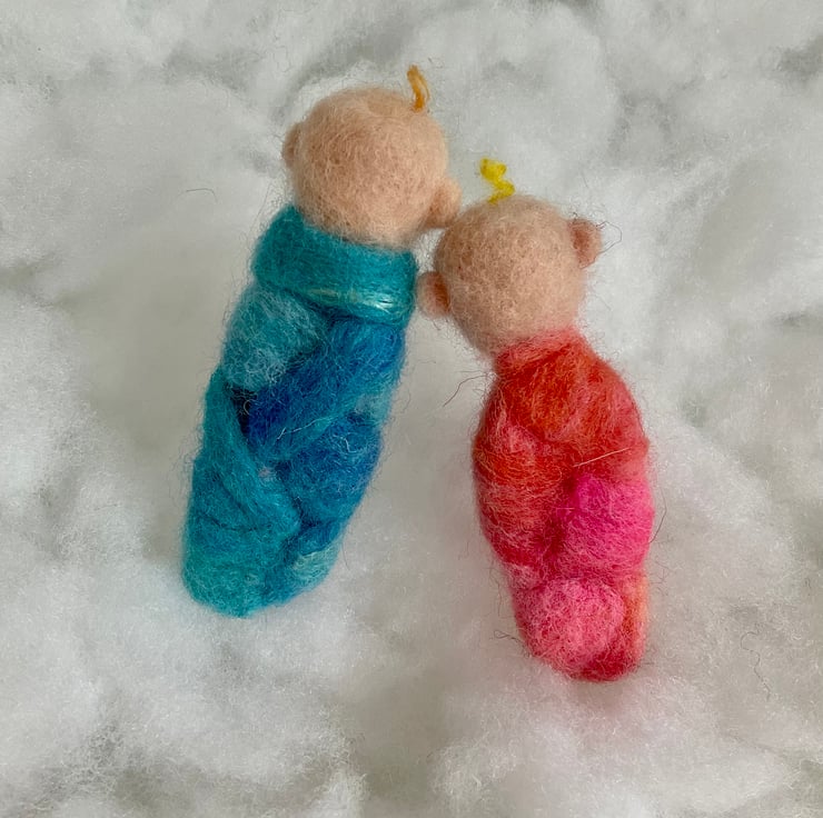 Cute little needle felted babies with dummy all snuggled up in their very own blanket!