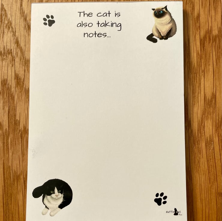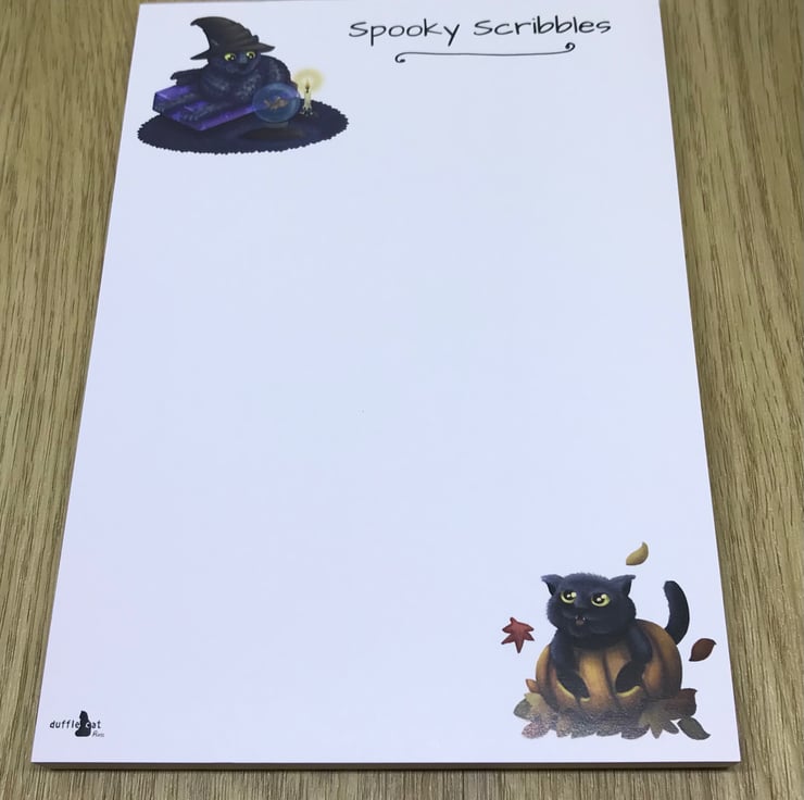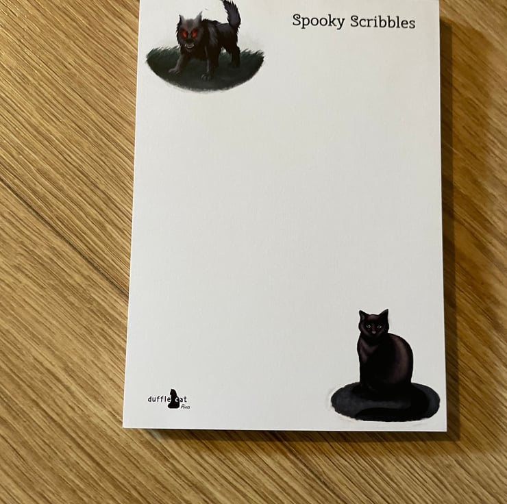 Full colour A6 notepad on quality 120gsm smooth paper glued on short edge. 50 printed sheets per pad and backed with heavy greyboard.