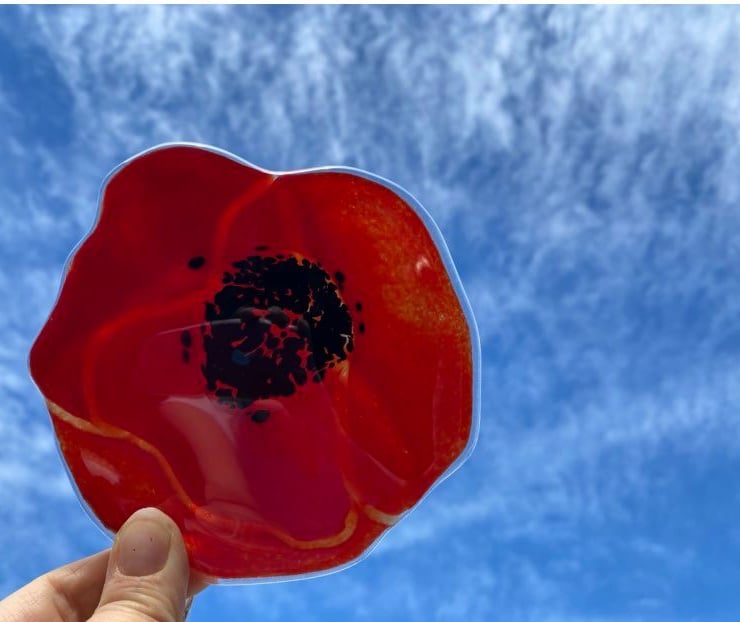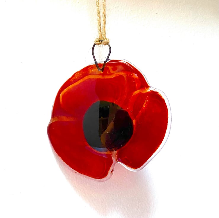 The Measurement for this hanger is 10cm. This Poppy Hanger is hand cut by me so each can be slightly different in shape. It can be hung inside around your home or in the garden for decoration or to show your support for the wonderful brave people who fought and lost there lives in the war.