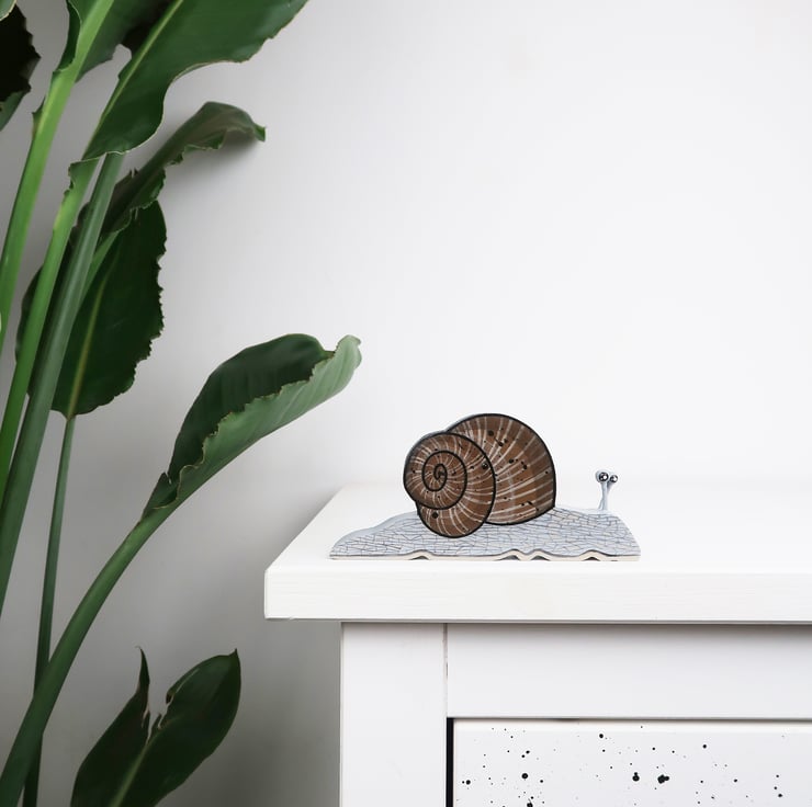 Snail ornament, wildlife art, decoration for shelf or windowsill.