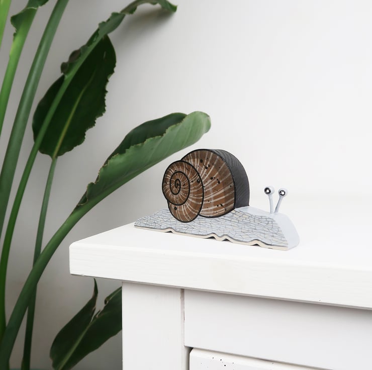 Snail ornament, wildlife art, decoration for shelf or windowsill.
