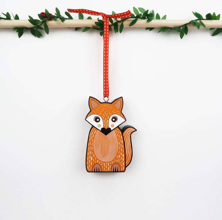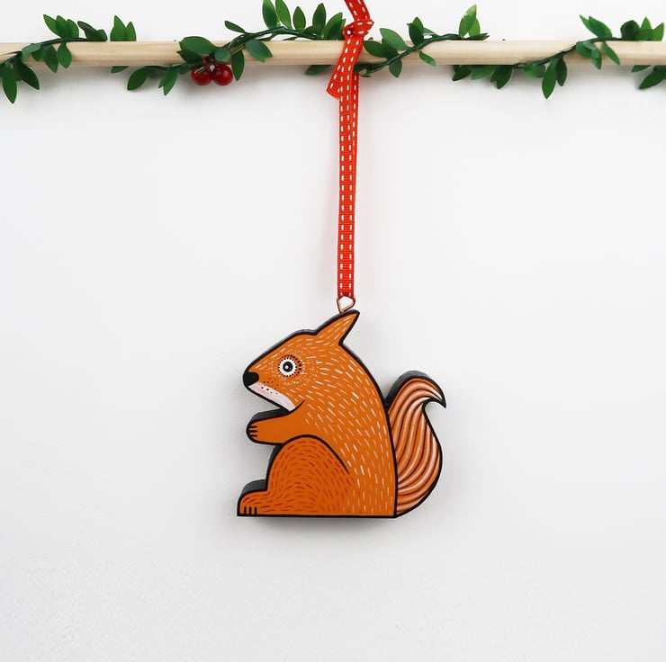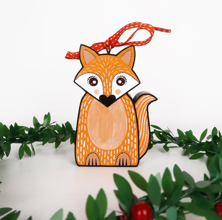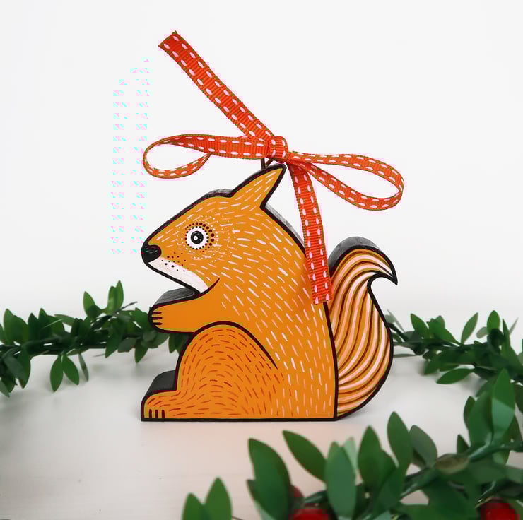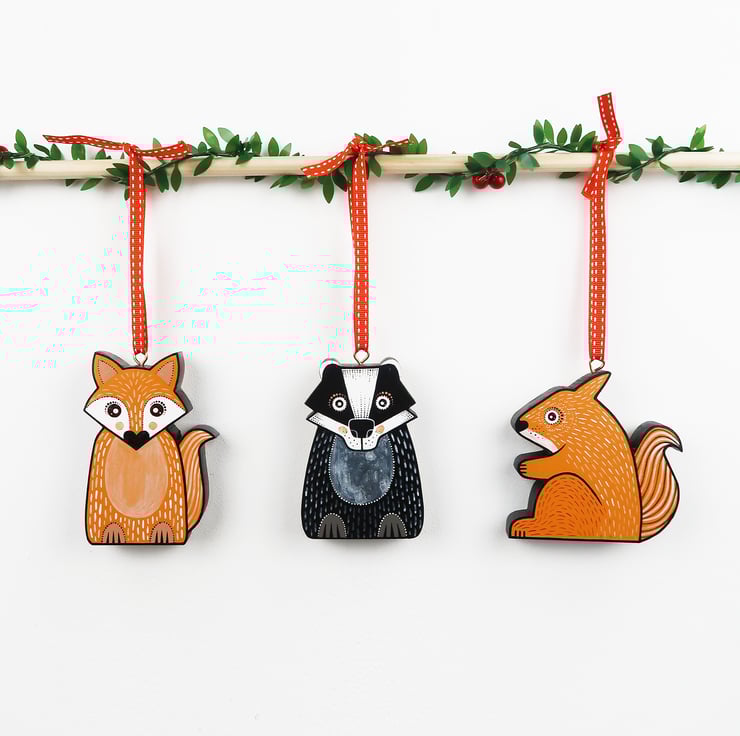 Fox, badger and red squirrel hanging ornaments. Set of all 3.
