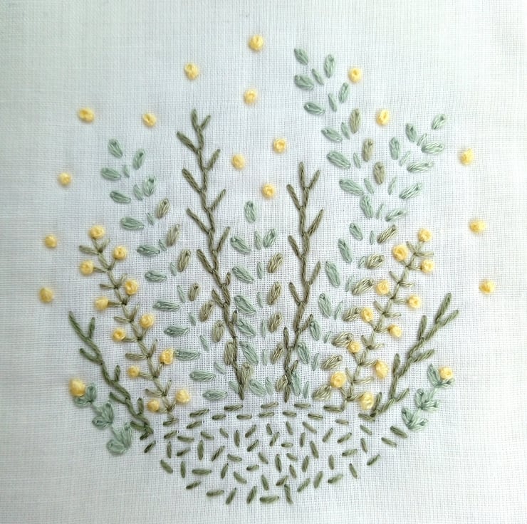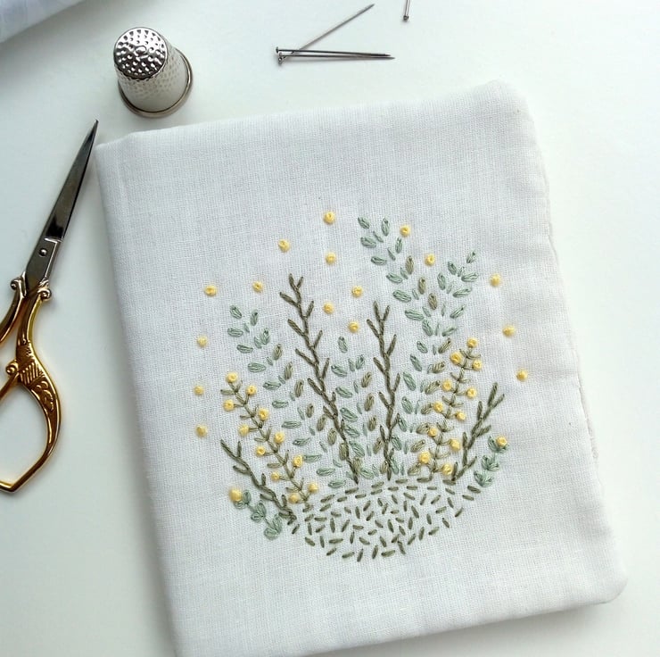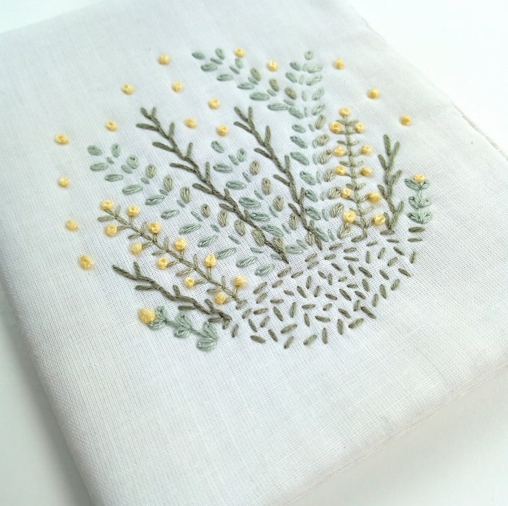 The initial hand drawn design was inspired by my love of flowers, ferns and foliage, and I wanted to capture these with my love for hand embroidery. I used the embroidered piece to make this pretty needle case and each of those elements feature on the front.