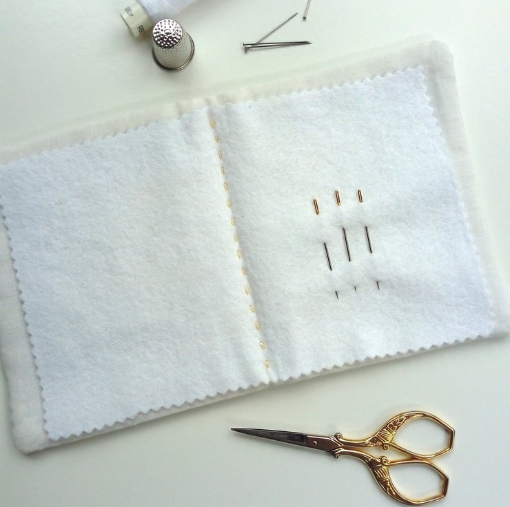 The inside is lined and there is a white felt insert for storing your sewing needles.