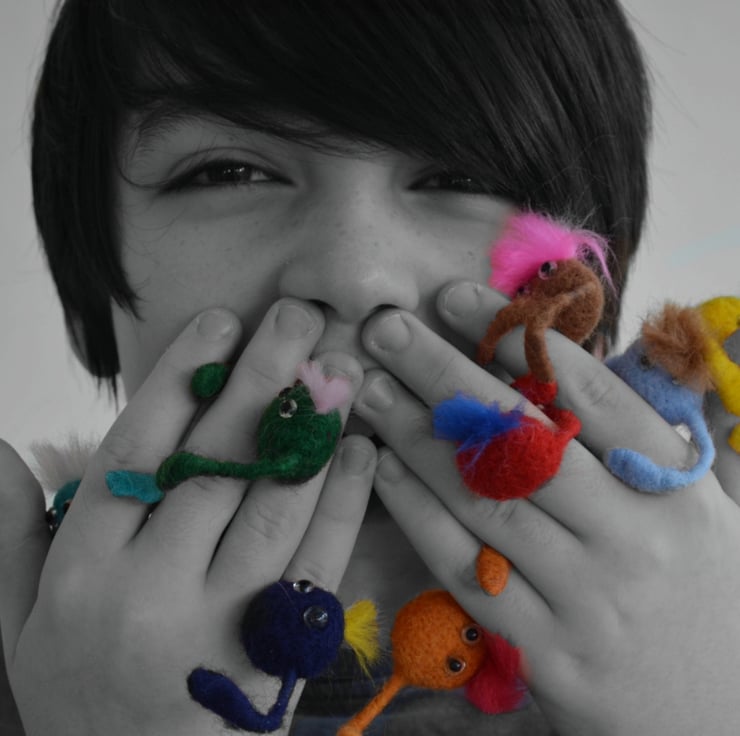 Made from Corriedale wool and finished with silky smooth Merino wool hair and glass eyes, These little Bugs, hug around your finger and when you don't need a hug, it can be hung just about anywhere!