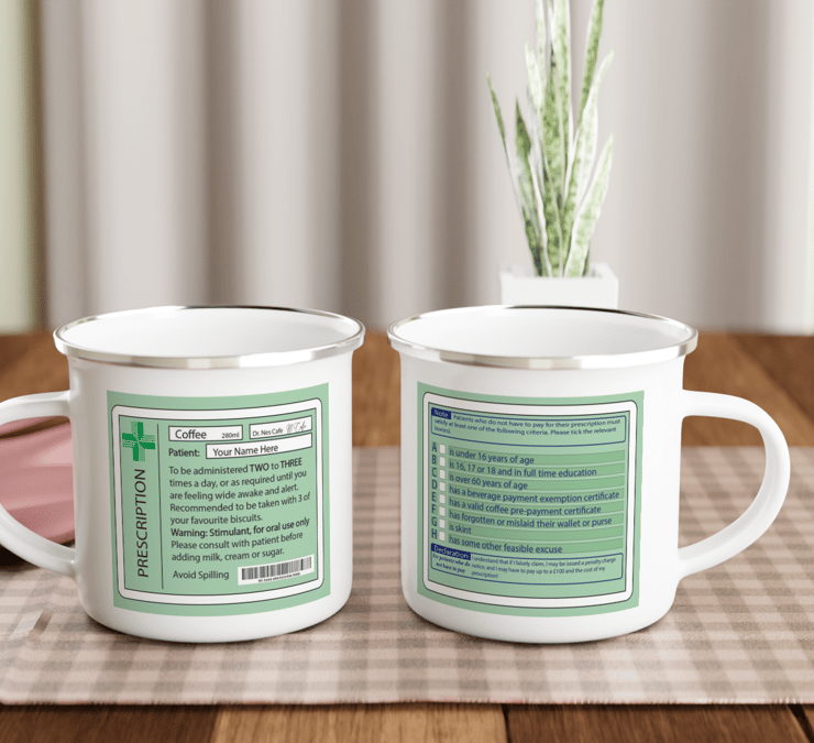 Also available in ceramic: https://folksy.com/items/7820241-Joke-ceramic-coffee-prescription-mug-and-coaster-Gift-for-medical-profession