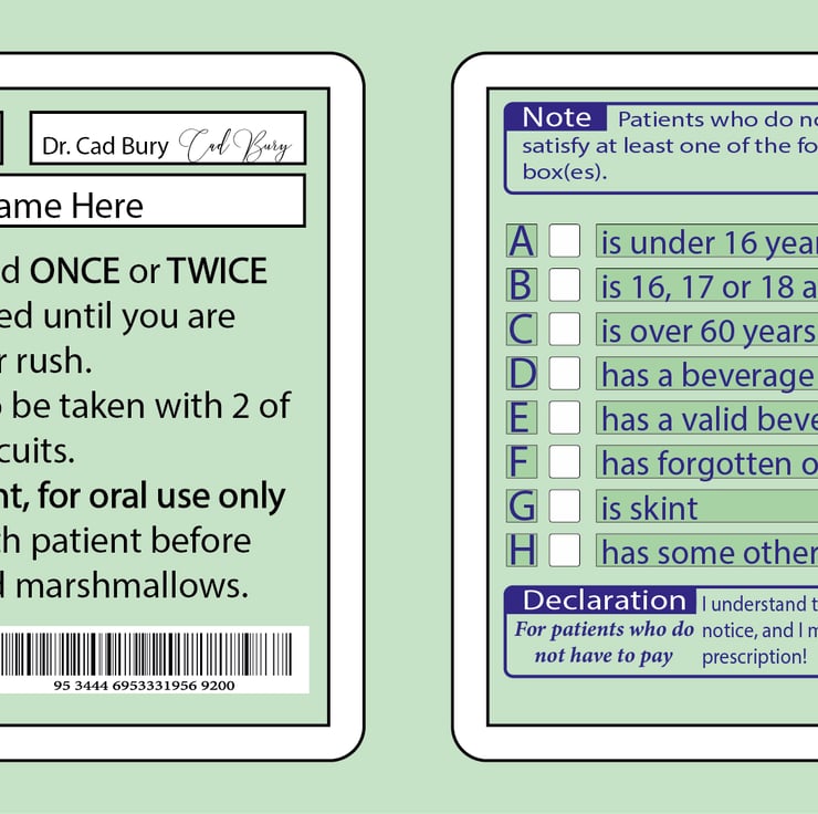 Both products come with a personalised imitation prescription design sublimated onto the products.