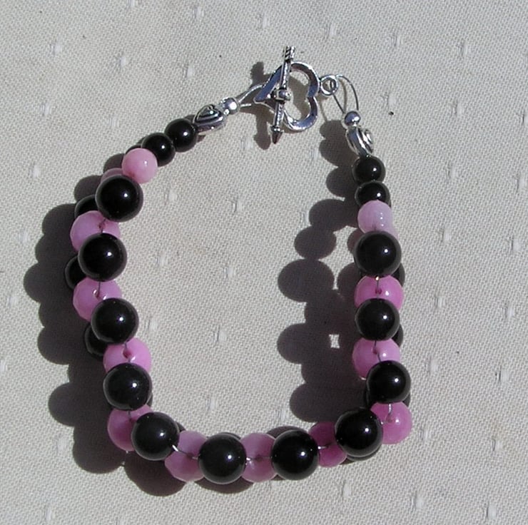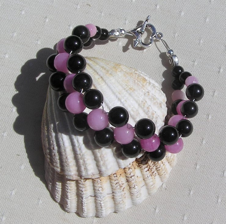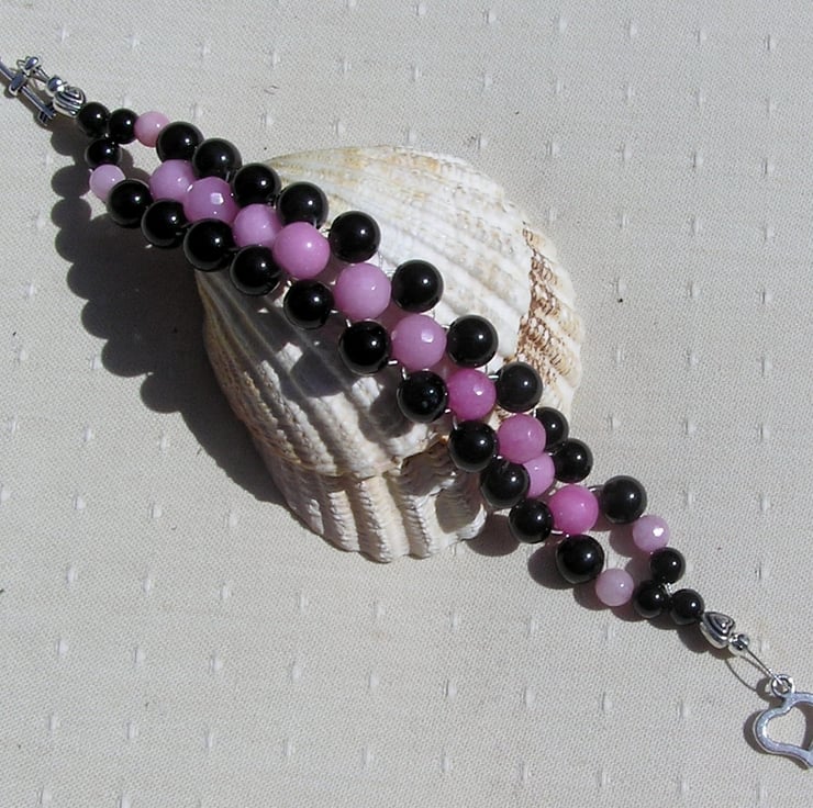This Stunning Bracelet is made from Black Onyx & Pink Morganite Beads, woven together to form a wonderful Cuff… A Striking yet Soft Combination that will look stunning for either the casual look or wear it with something more Elegant for a Special Evening out