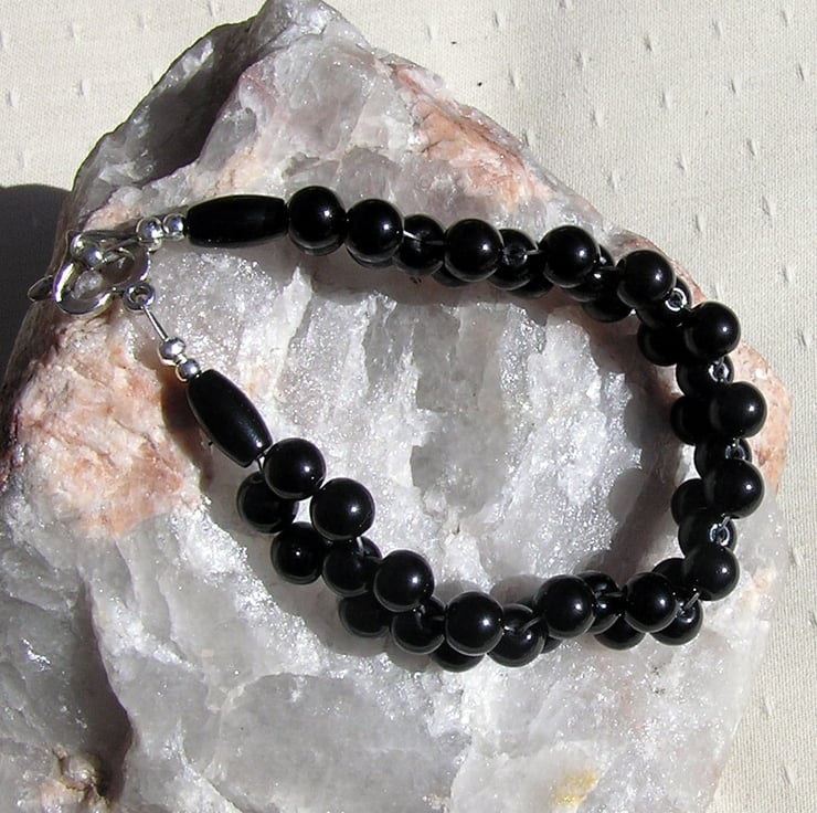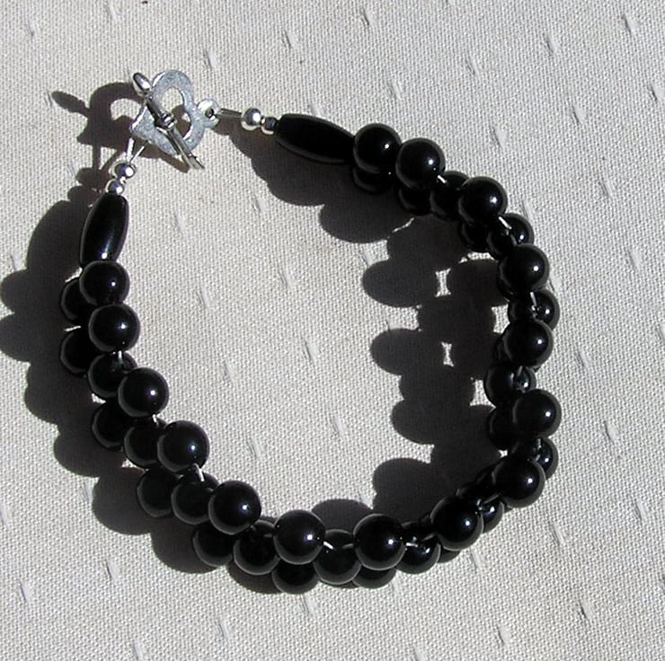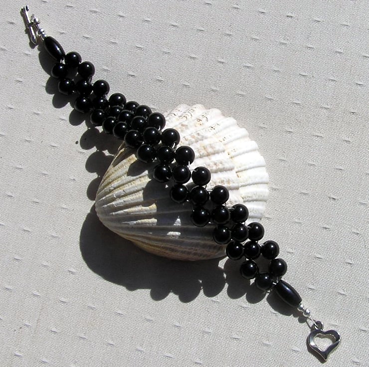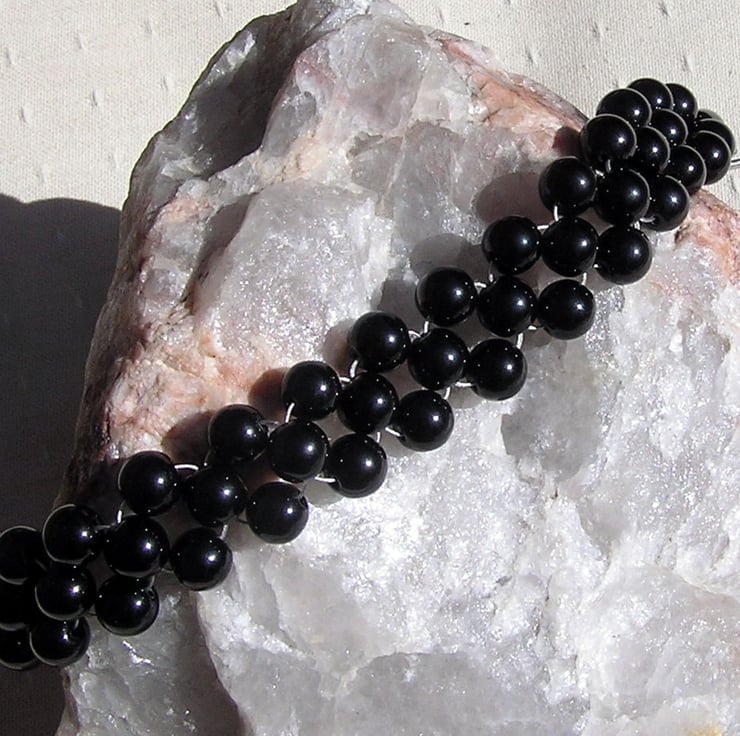 This Stunning Bracelet is made wholly from Black Onyx Beads, woven together to form a wonderful Cuff - a Swathe of Black that will look stunning either worn casually or with something more Elegant for a Special Evening out