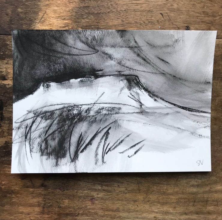 With this sketch I have tried to convey the slightly ethereal, wild, brooding, windswept quality of the tor and its place high up on Hathersage moor with dark stormy skies looming overhead.