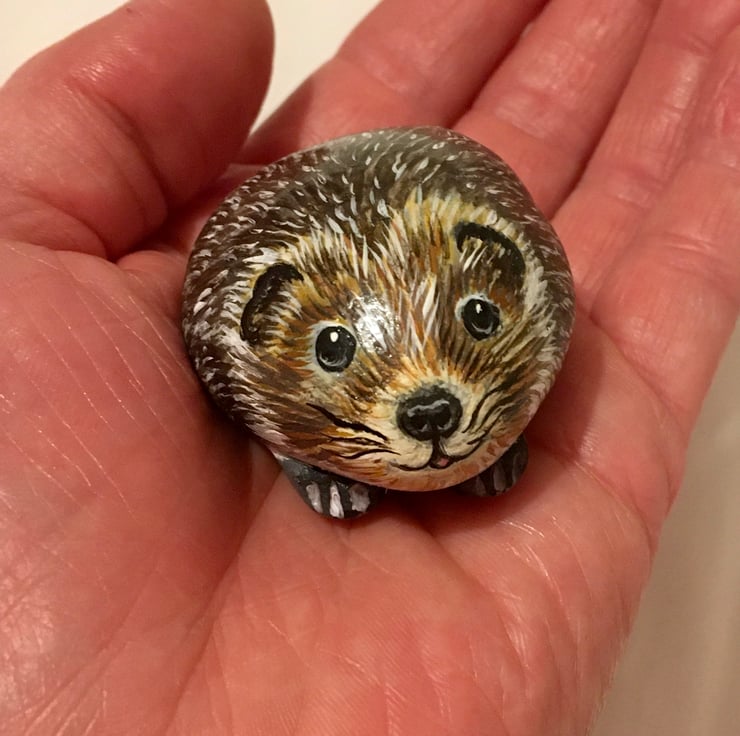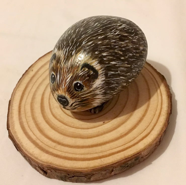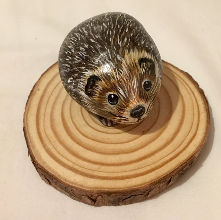 Hedgehog hand painted pebble garden rock wildlife stone art