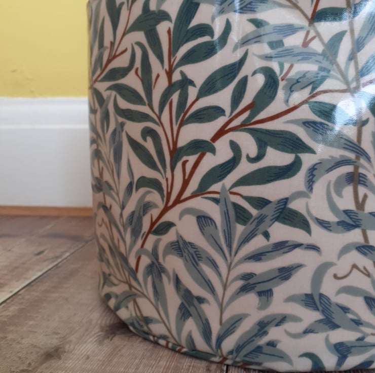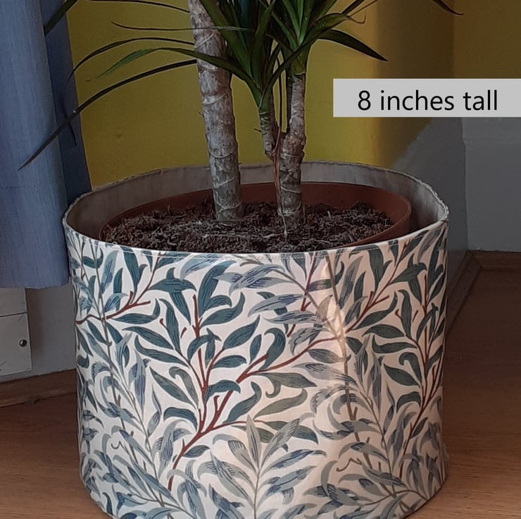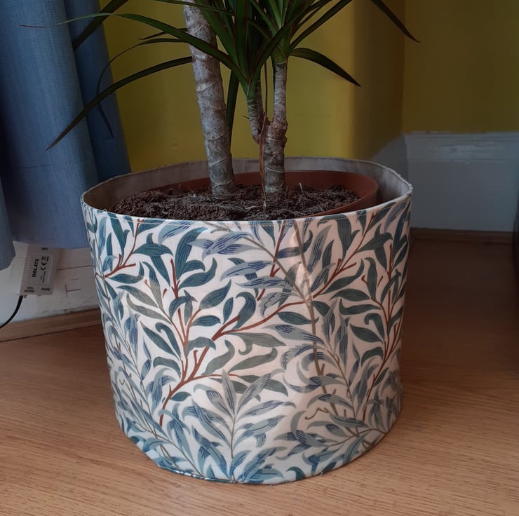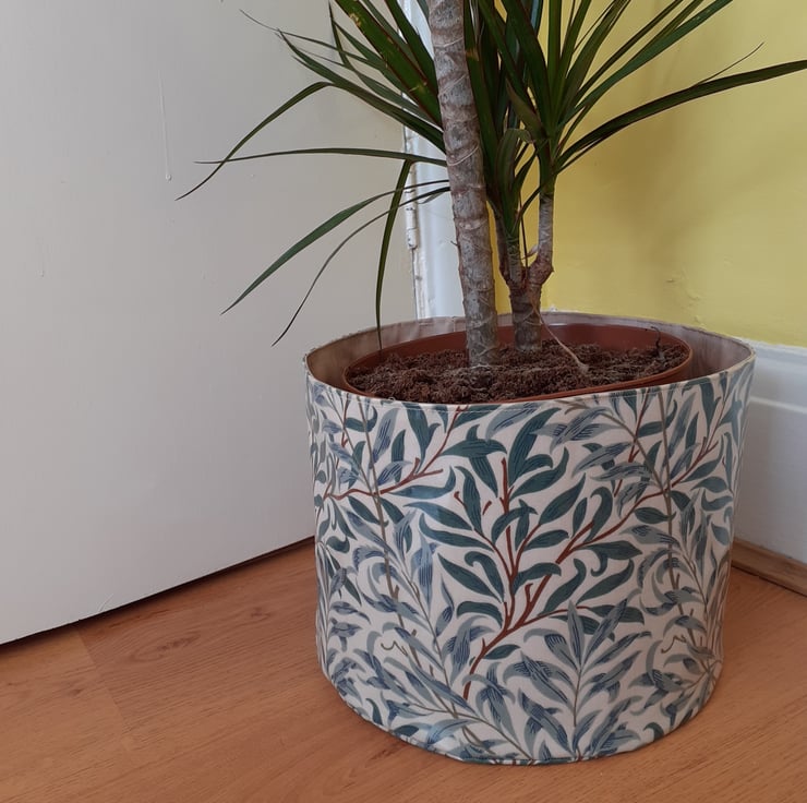I have designed and made a fabric pot using a William Morris waterproof printed fabric. The fabric print details the gorgeous Willow Bough design. The pot could be be used for many things, i.e. a plant pot ( pop the plant in its pot inside), use in the kitchen to store cloths or in the bedroom for storage.