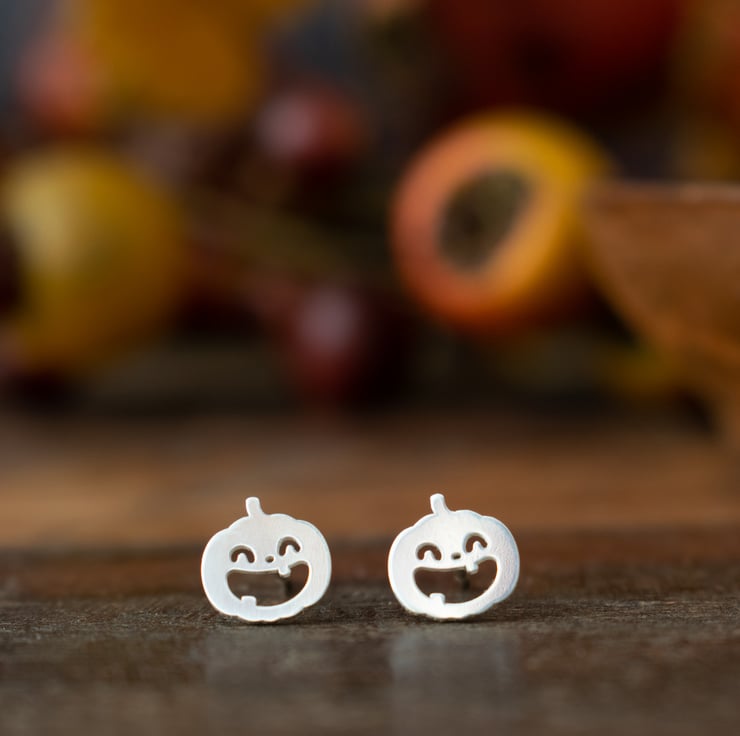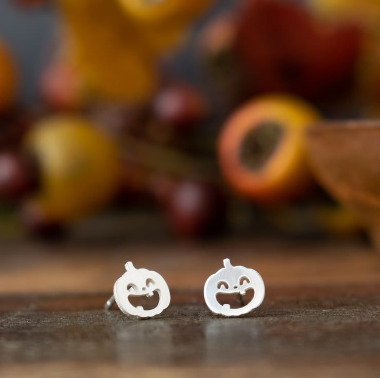 Whilst I can't take the credit for cutting the pumpkin shapes - they are far too fiddly for my hand saw! - I hand finish each shape, solder the post backs and polish them up to create these fun and quirky stud earrings.