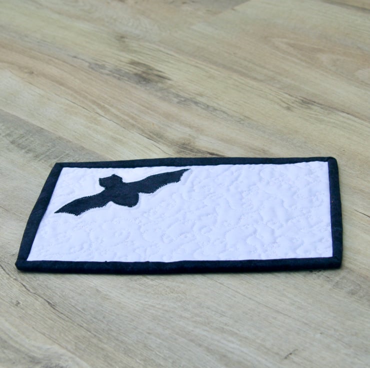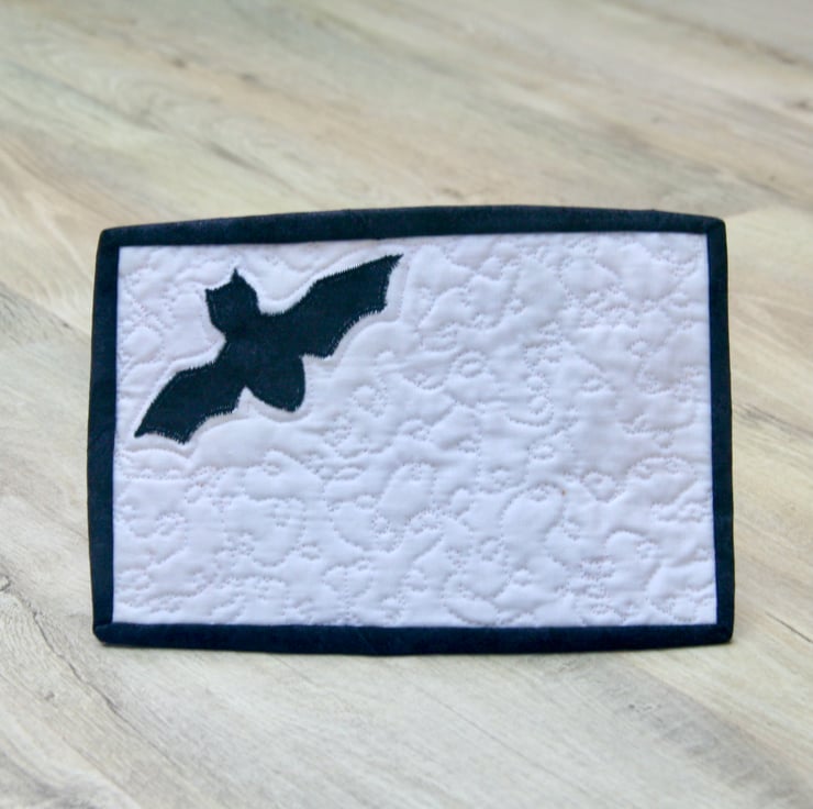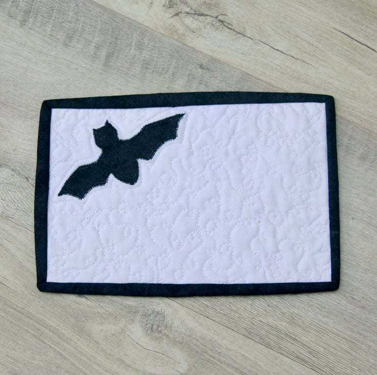 This spooky mug rug with its bat is big enough to accommodate your drink and a cheeky biscuit.