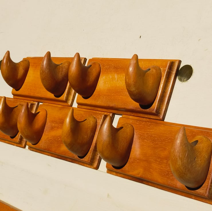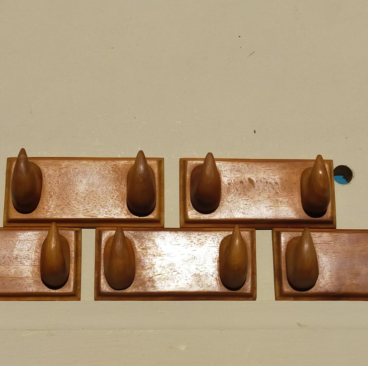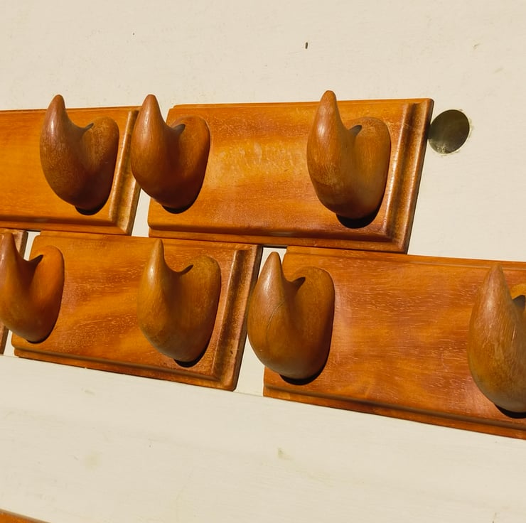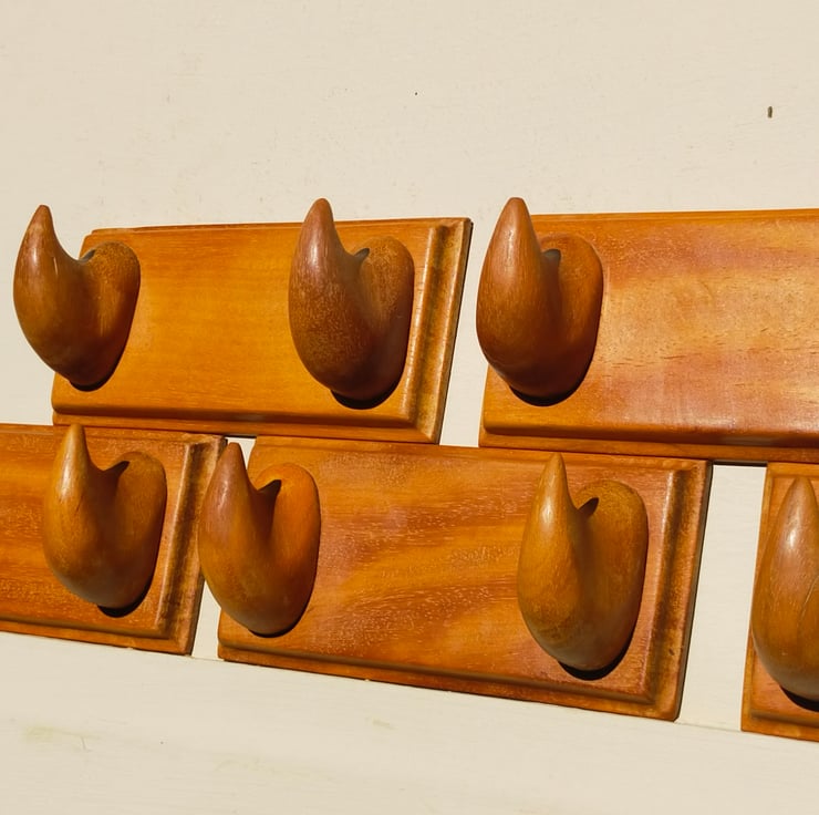 When you search across the internet for something like "reclaimed wood coat rack" the vast majority of what you find will be metal coat hangers imported from China, screwed to a piece of reclaimed timber. For me that wasn't enough: the reclaimed hardwoods I use are incredibly durable, certainly enough for coat hooks, and allow me the opportunity to carve them into individual sculptural and beautiful shapes.