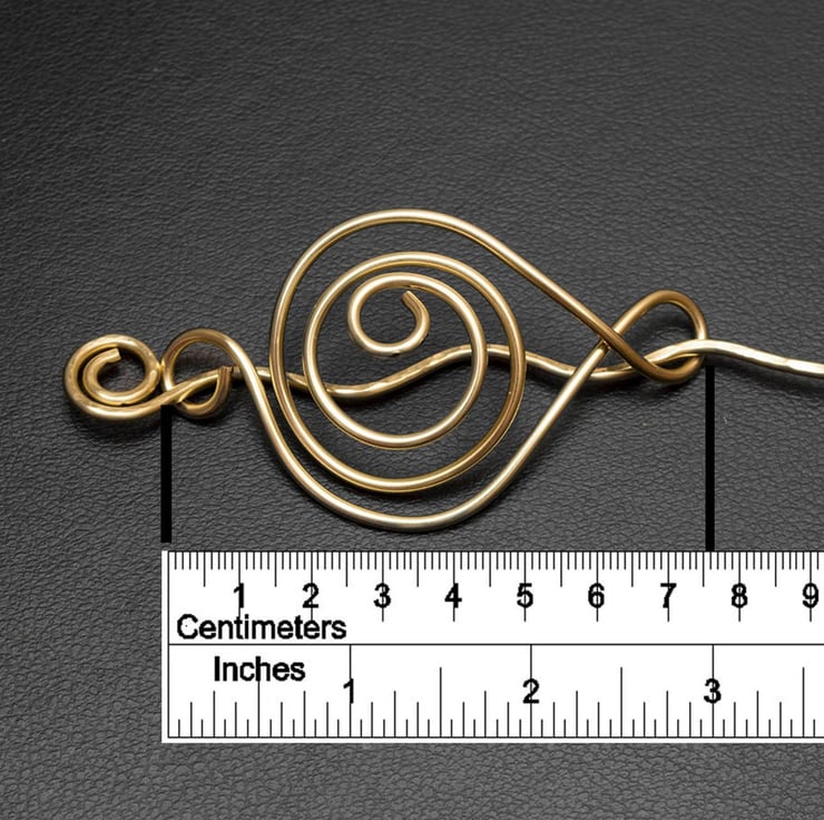 This pins is made of brass wire .It is measures about 3" x 1.5" . and stick metal is 3.8 " in length.