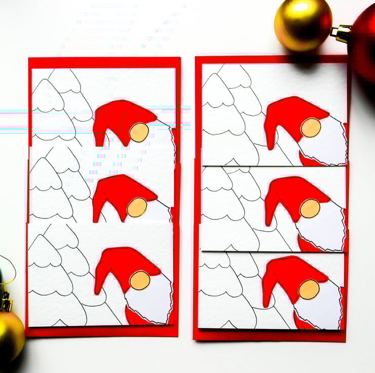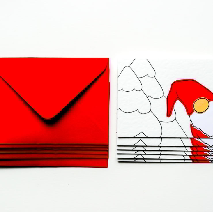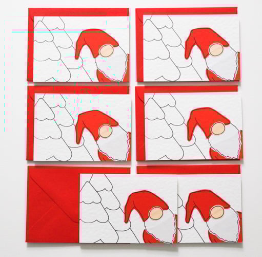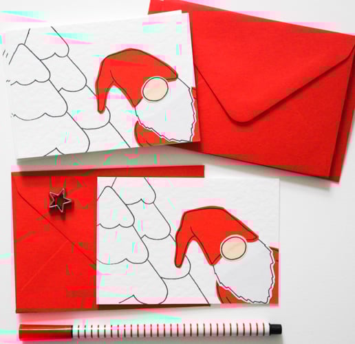 Cute Nordic Santa pack of six Christmas cards. Perfect for sending seasons greetings to loved ones this Christmas. Pop in a stocking to be used after Christmas as cute Thank you notes. Ideal as lunch box mini notes. Brighten up your child's day or Christmas.
