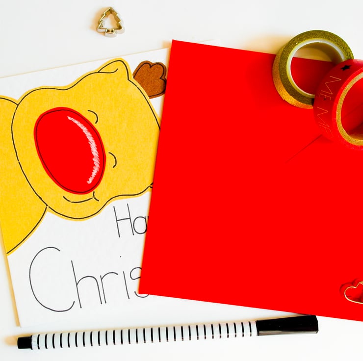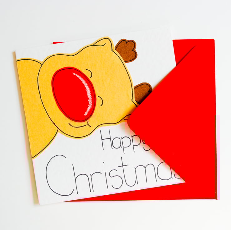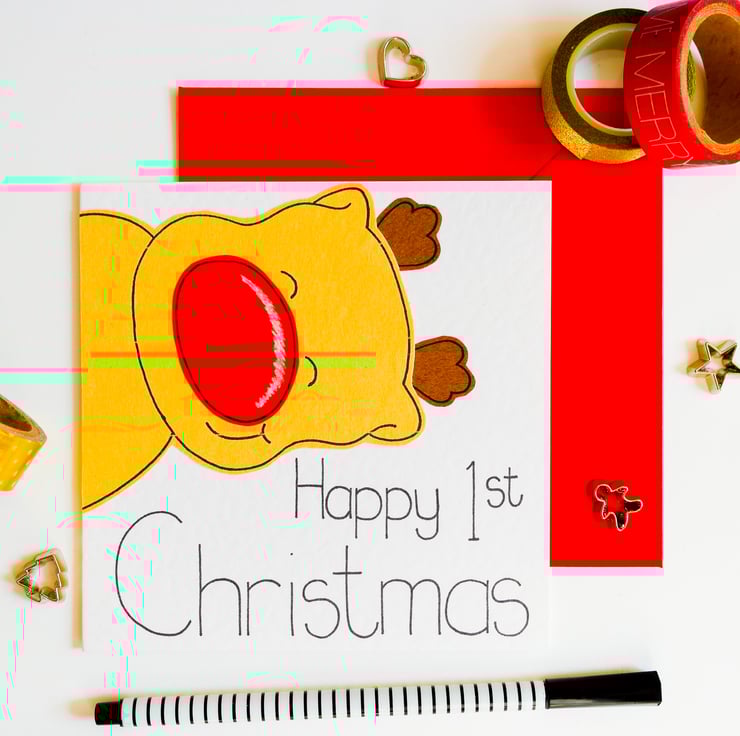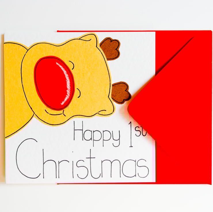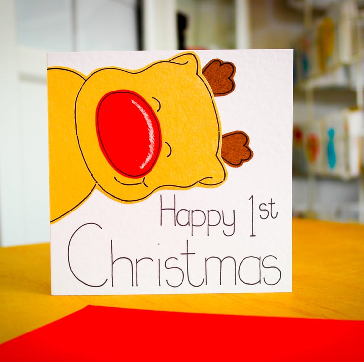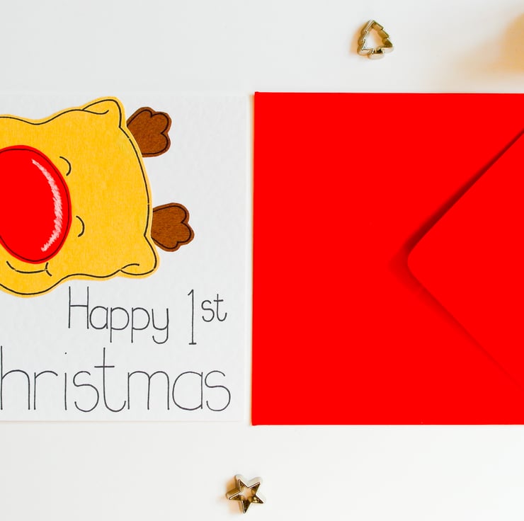 A cute reindeer Christmas card. Ideal to send to a newborn baby boy or girl.