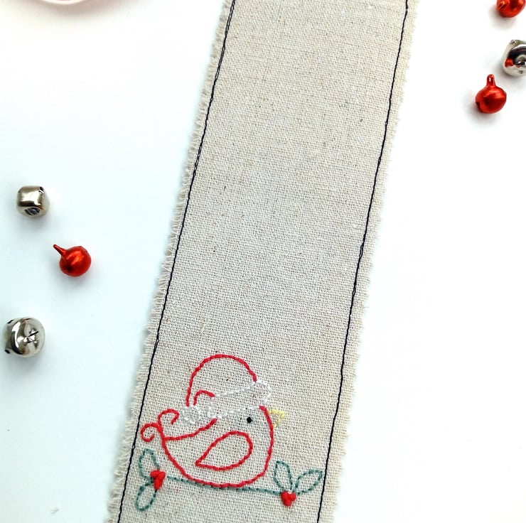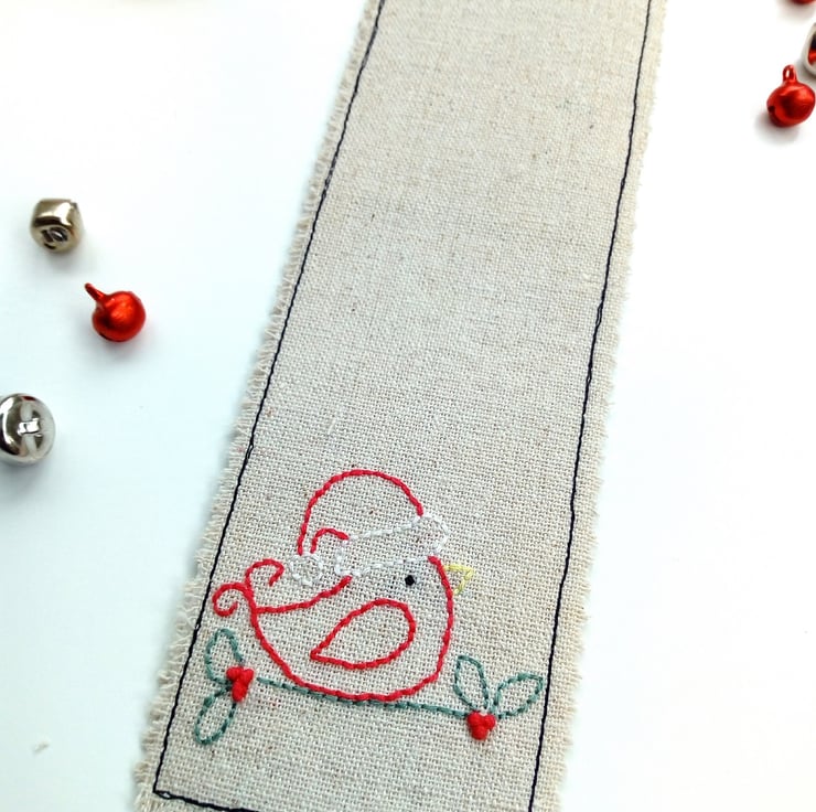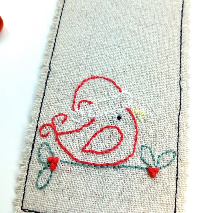 All lovingly hand embroidered, this festive bookmark would make an ideal stocking filler.