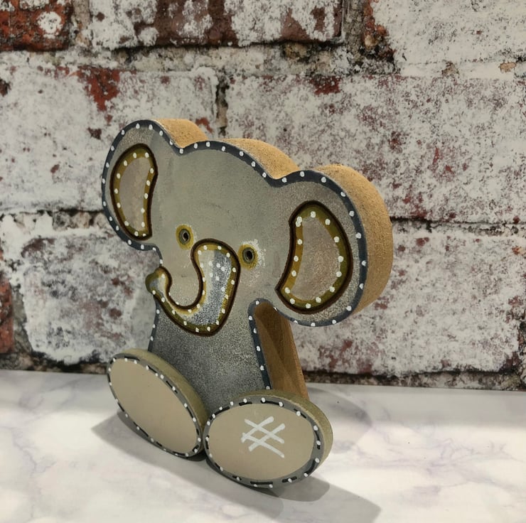 Wood Elephant quirky shelf sitter ideal as a children's or animal lovers gift or to decorate a child’s room. My chunky animal shelf sitters are hand painted with acrylics & sealed with a satin varnish.