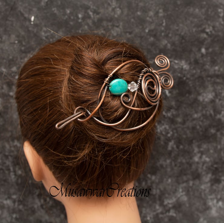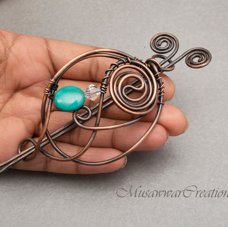 Create a unique and beautiful hairstyle with this Antique Copper Hair Bun Holder, designed to combine elegance and durability. Handcrafted from heavy-duty copper in a spiral design, this bun holder ensures your hair stays securely in place all day long, making it perfect for weddings, parties, or everyday wear.