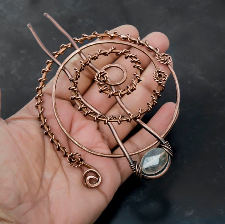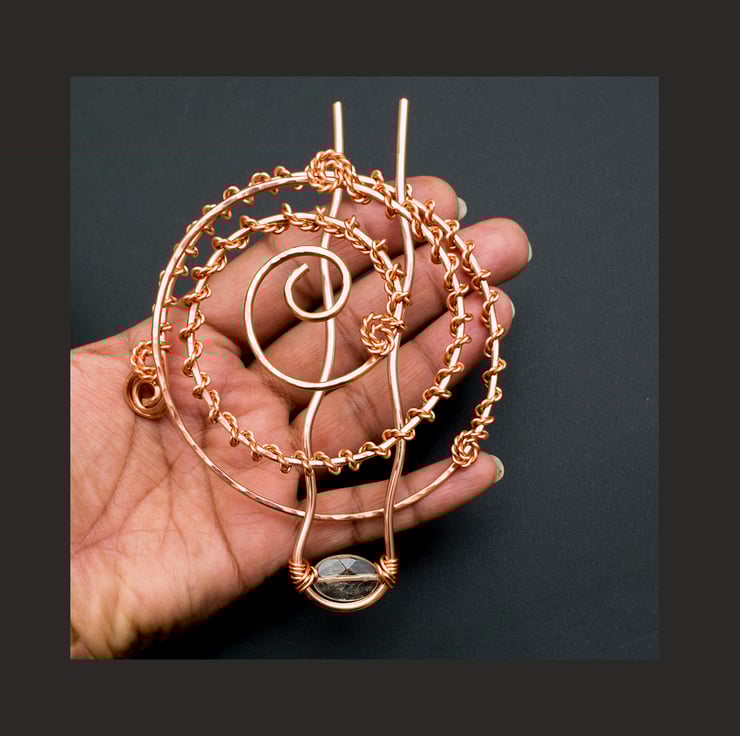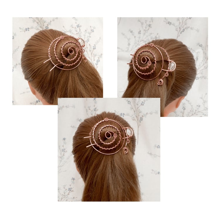 Add a touch of timeless elegance to your hairstyle with this handcrafted Antique Copper Spiral Bun Cage. Designed especially for long or thick hair, this stunning accessory keeps your bun secure while adding a unique, artistic flair.